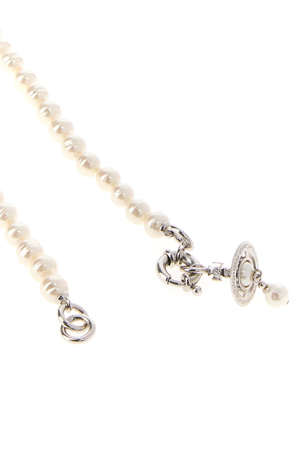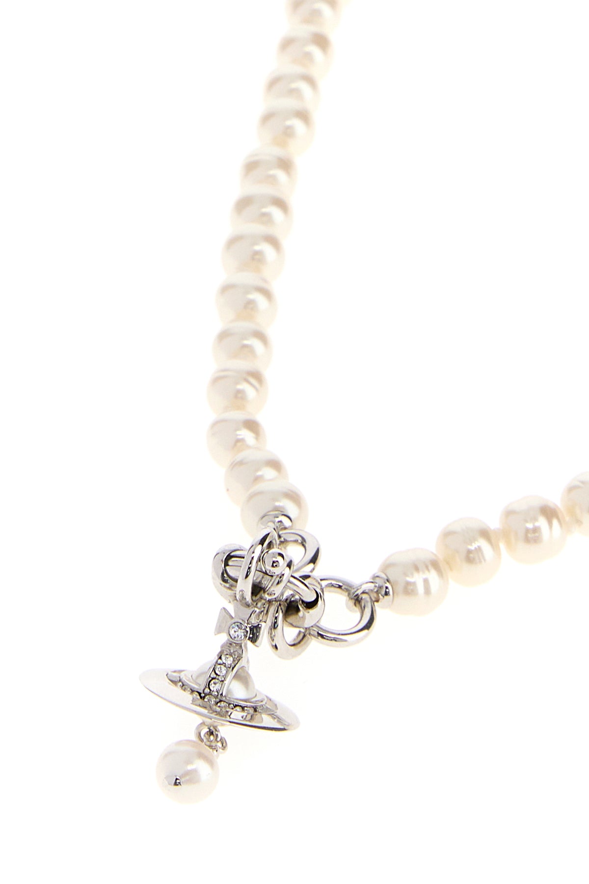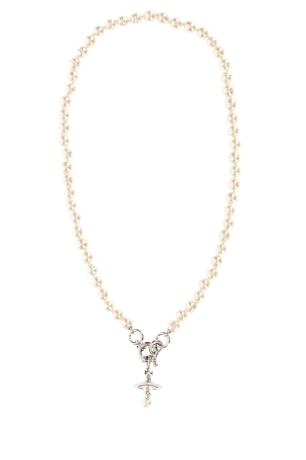 Necklace realized in pearls enriched by metal Orb charm with rhinestones.