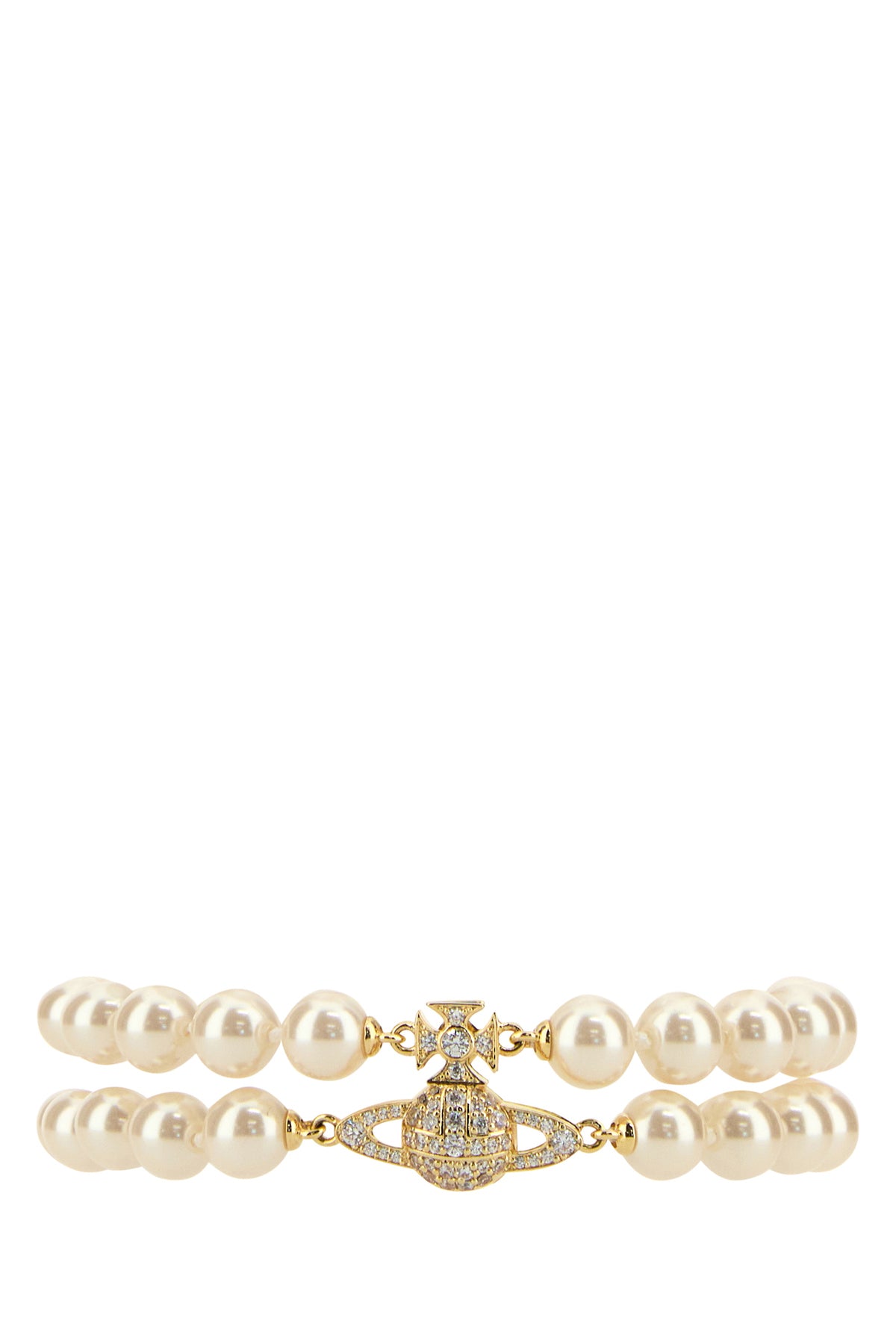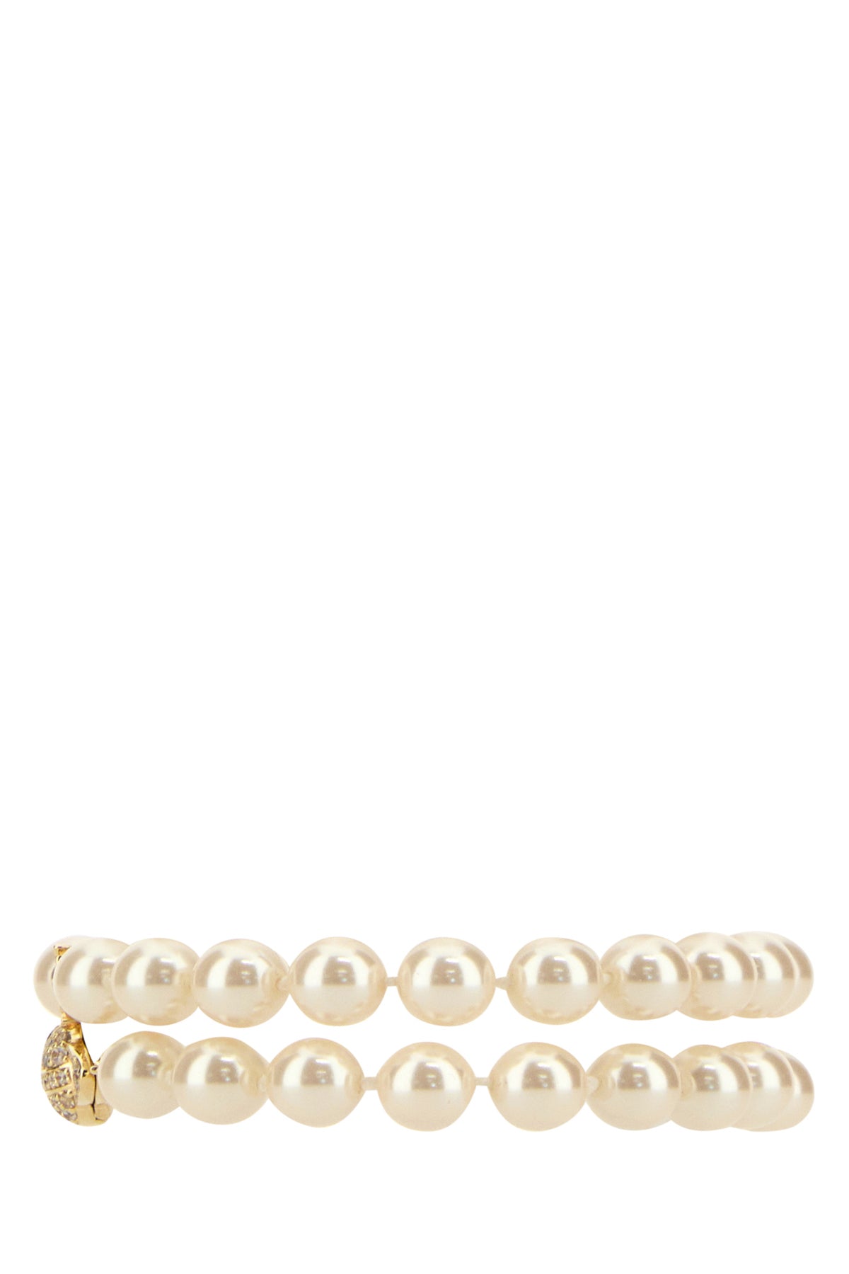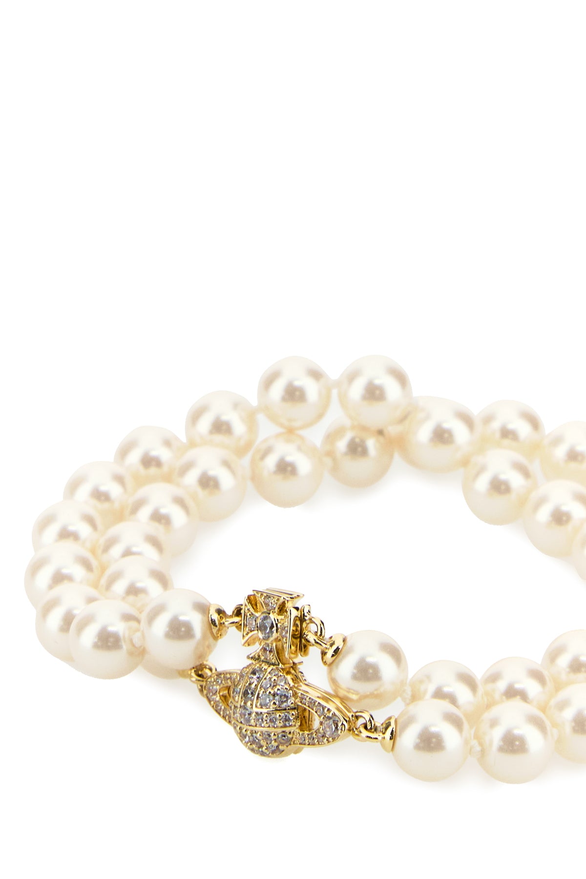 Bracelet realized in pearls enriched by Orb charm with rhinestones.