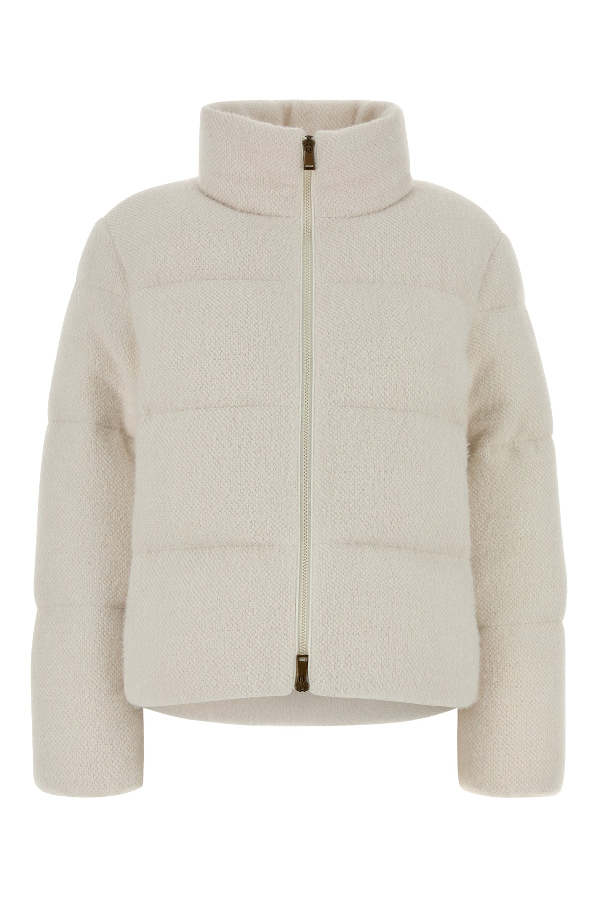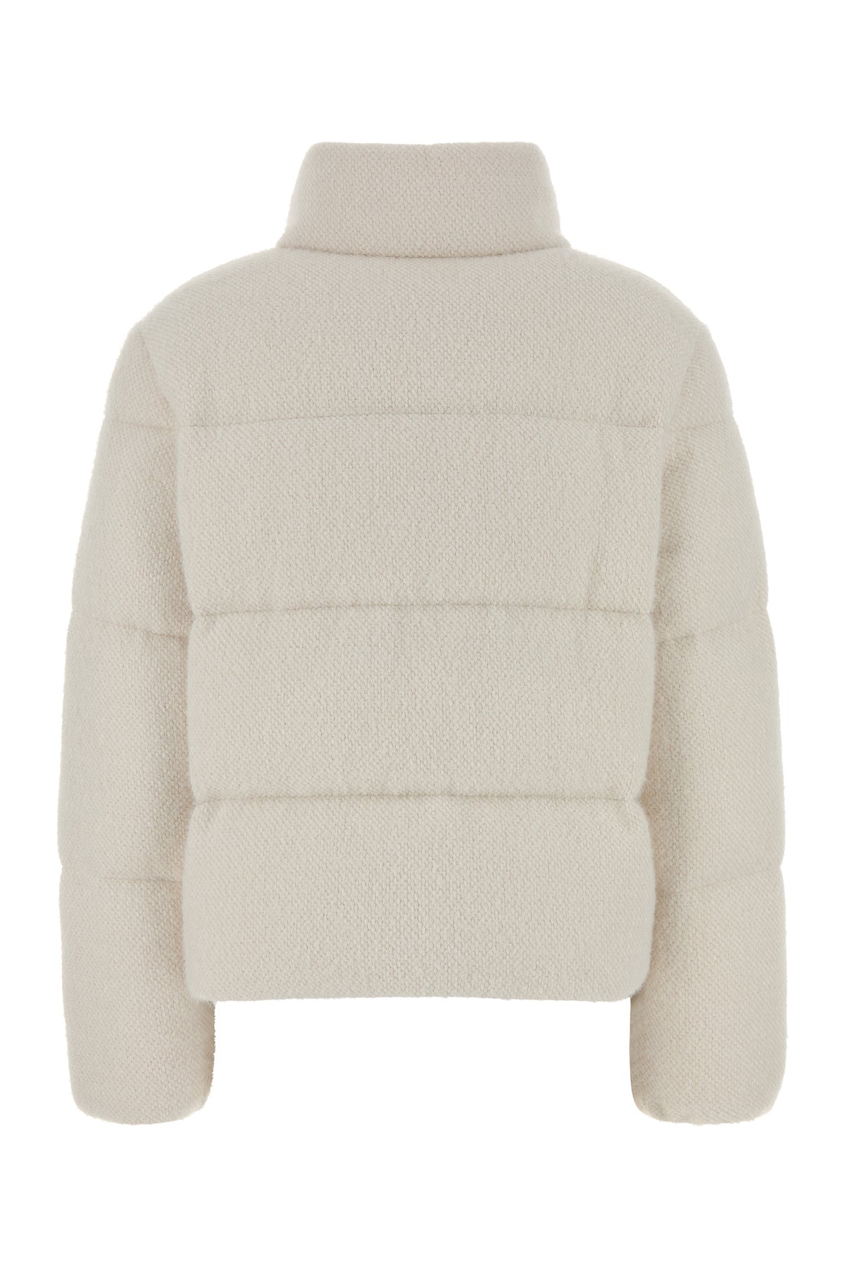 Down jacket realized in quilted polyester enriched by logoed patch on the sleeve.