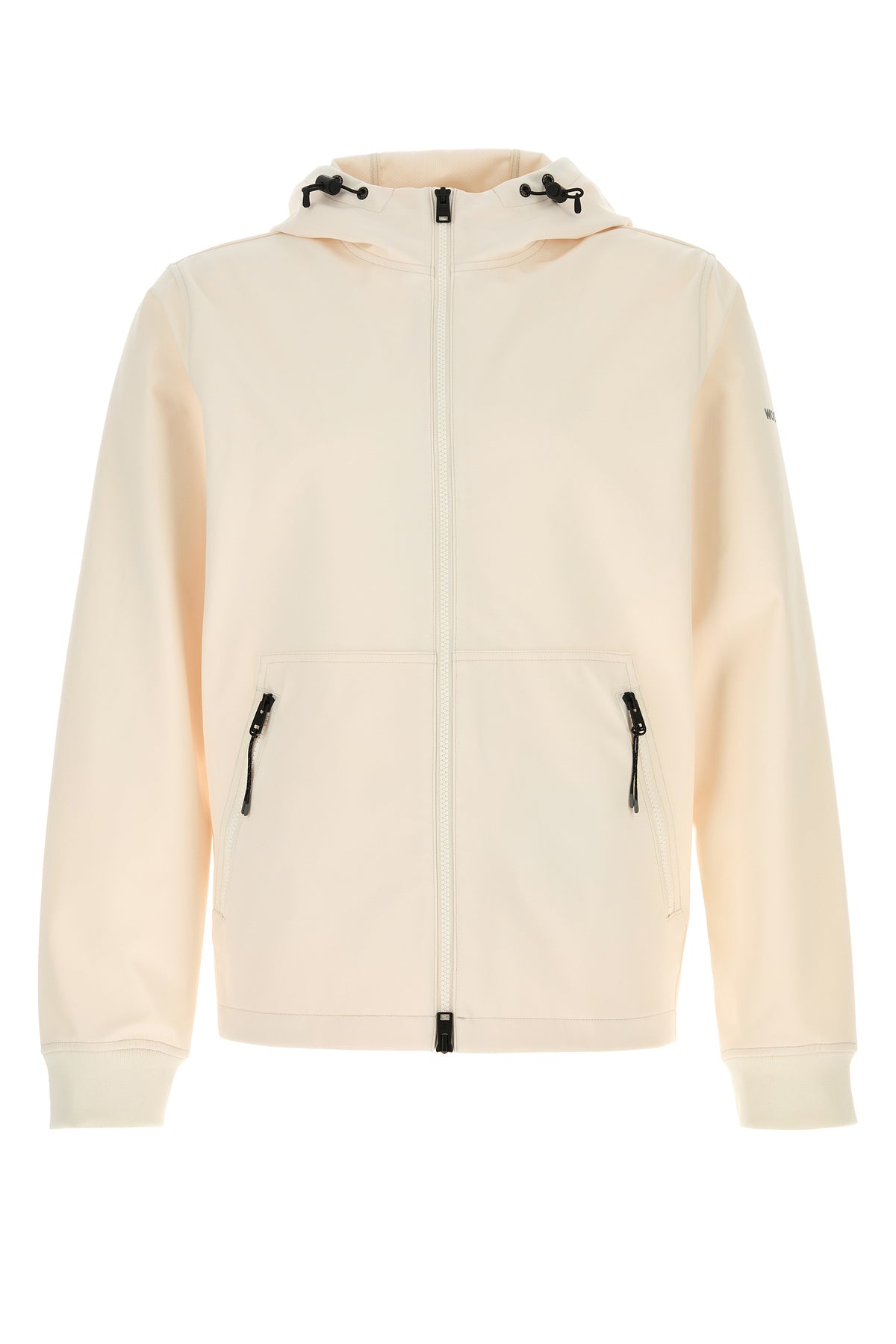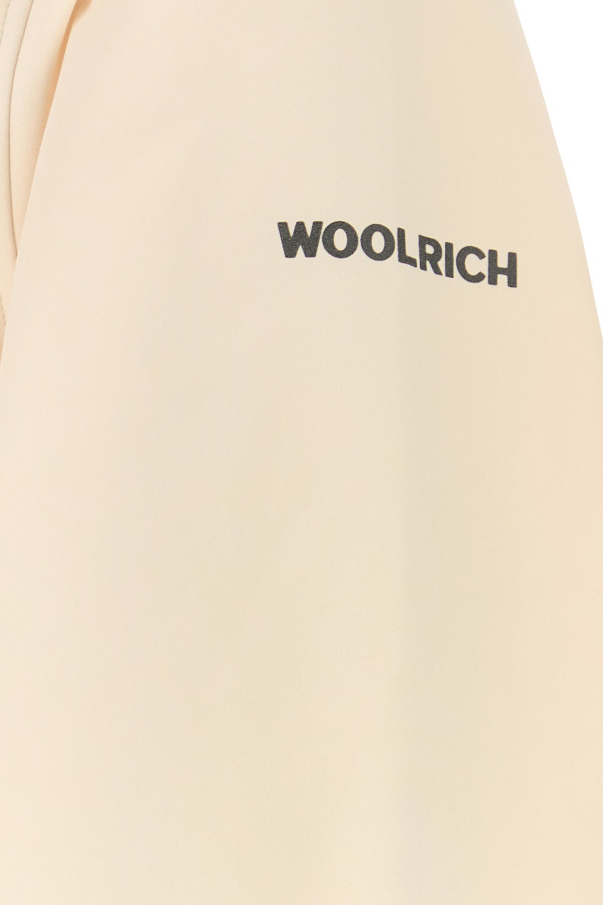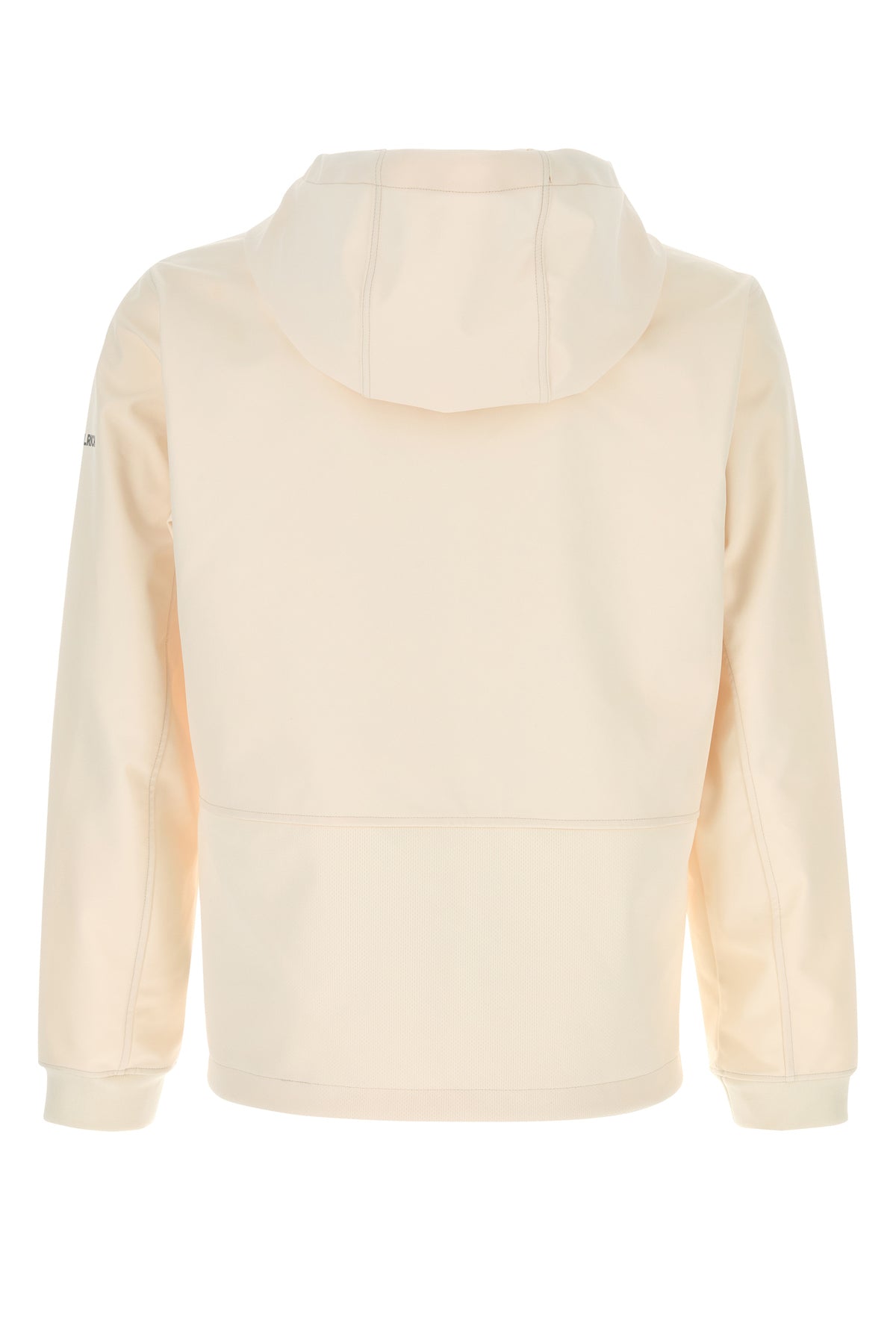 Jacket realized in stretch polyester characterized by contrasting printed logo on the sleeve.