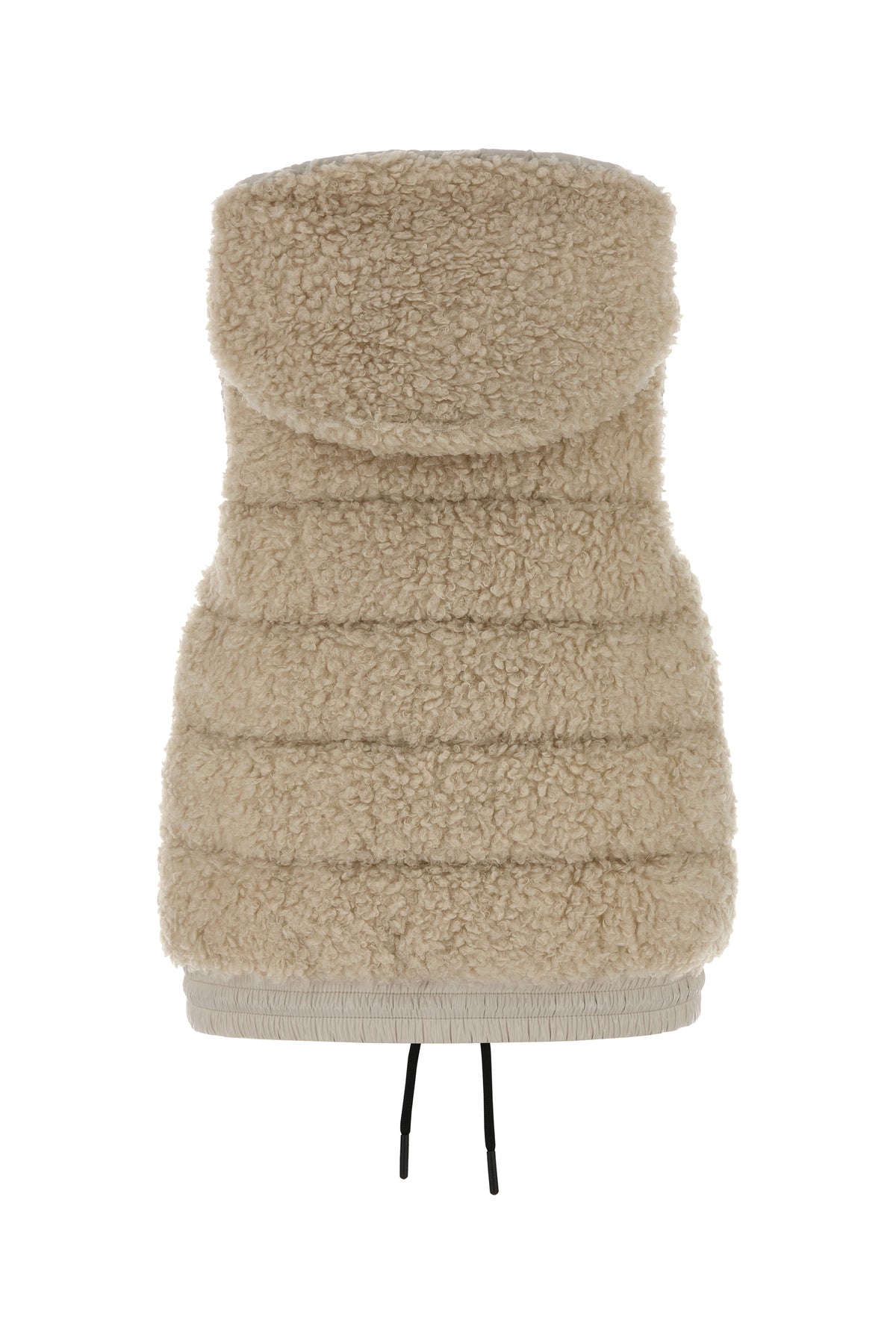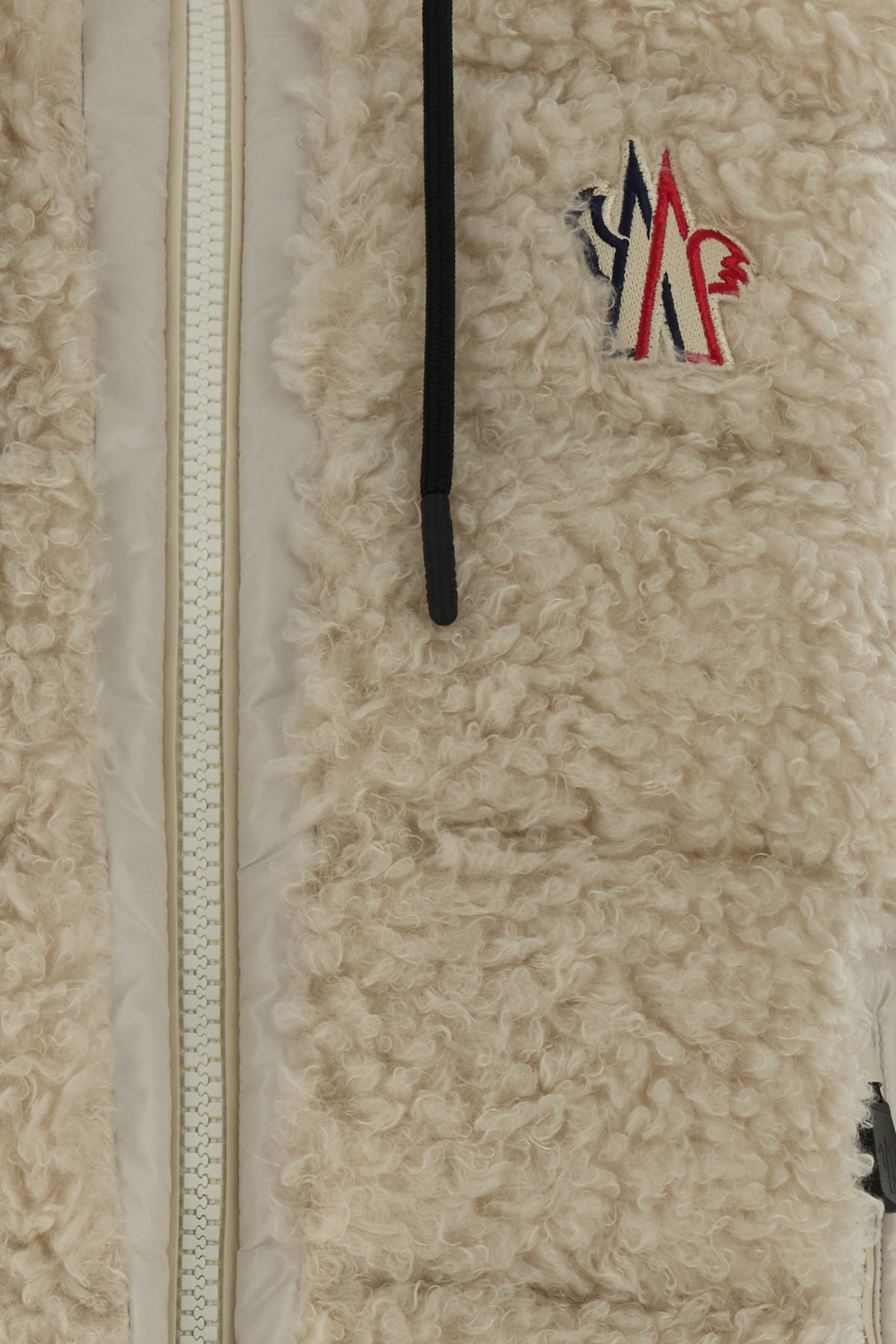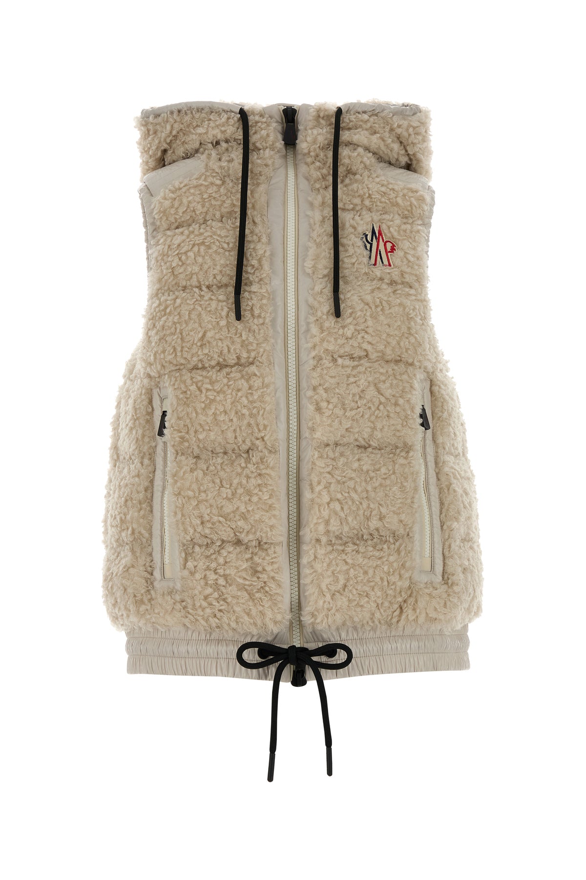 Sleeveless down jacket realized in teddy fabric enriched by contrasting logoed patch on the chest.