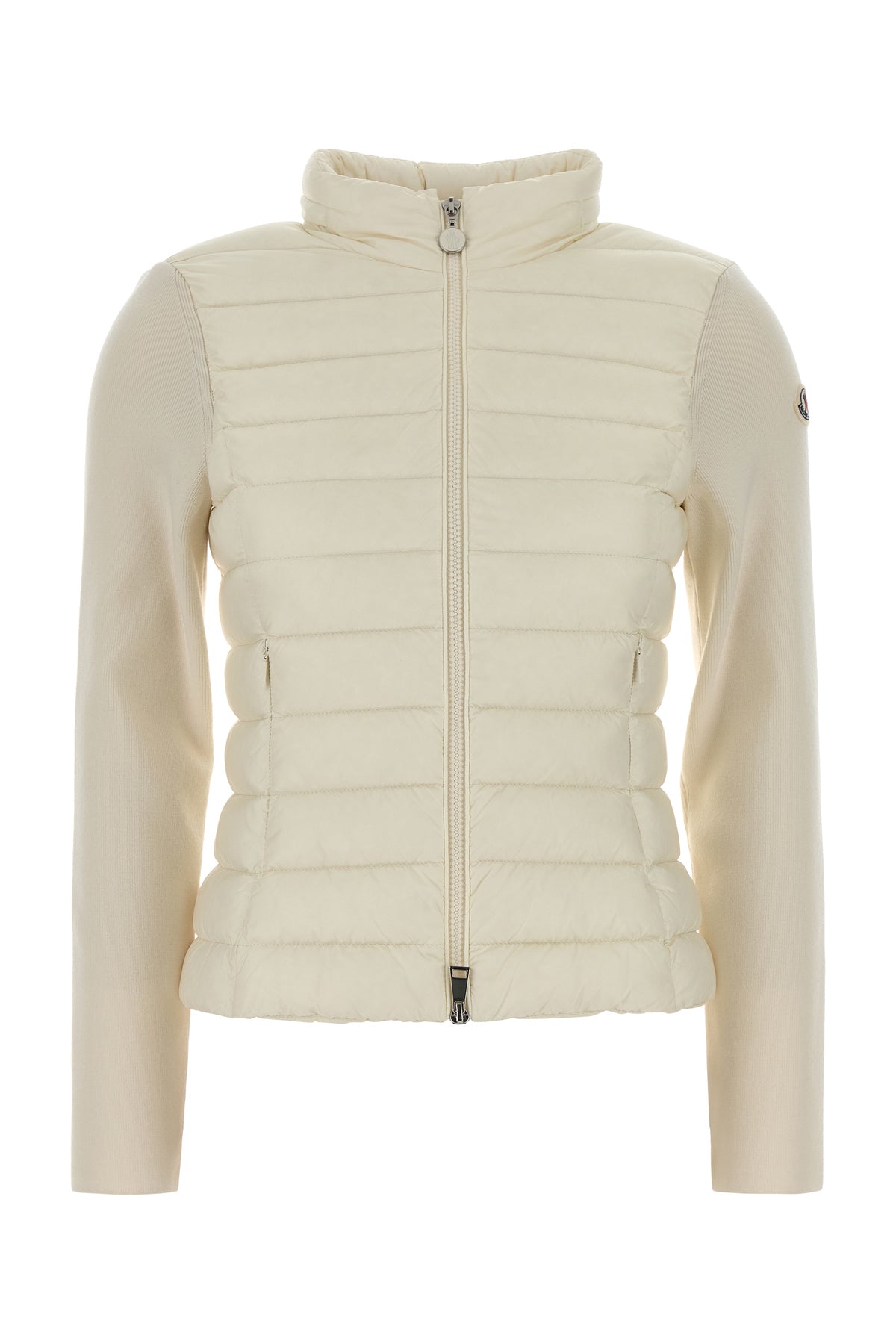 Jacket realized in wool blend with quilted nylon insert at the front enriched by contrasting logoed patch on the sleeve.