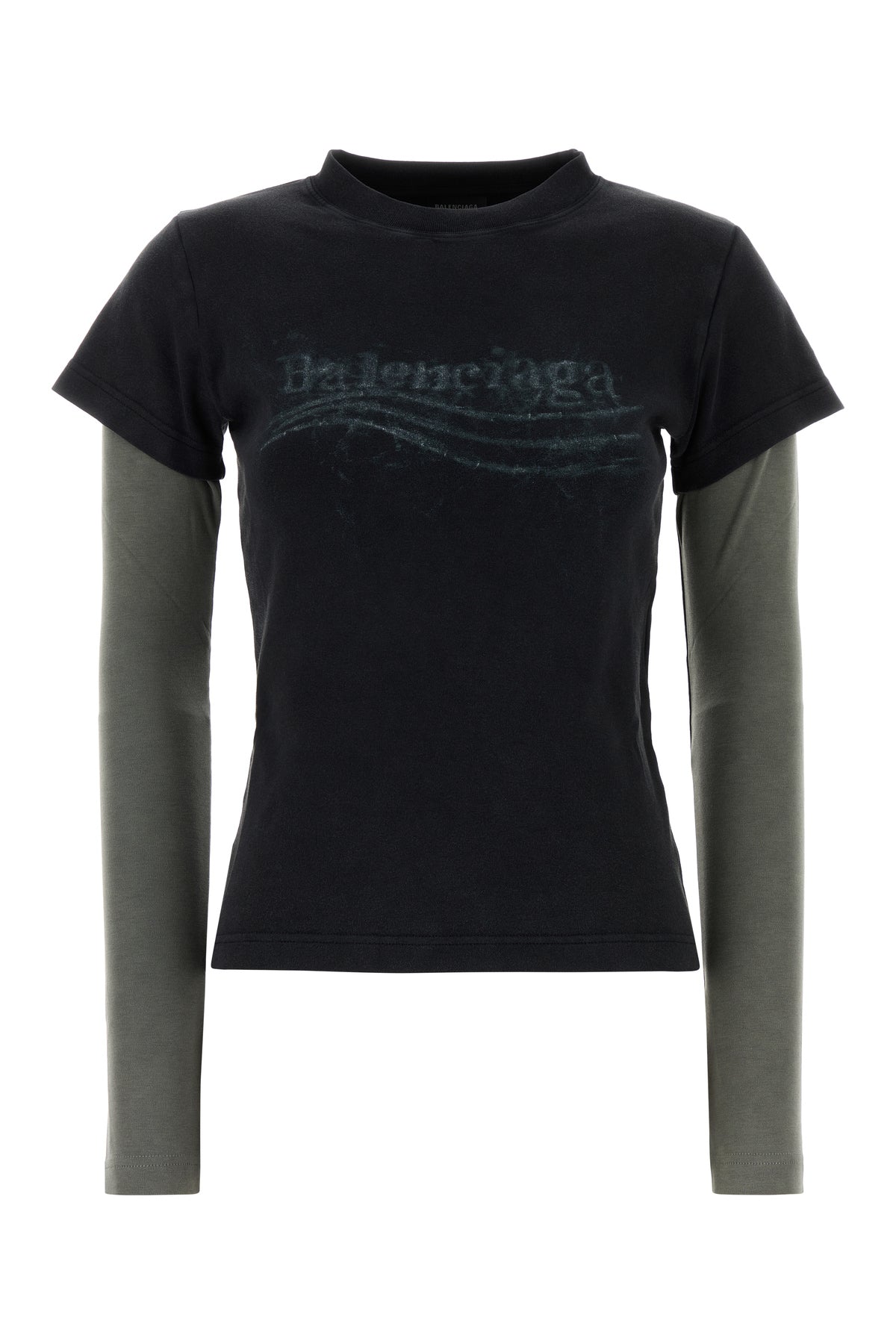 Long-sleeves t-shirt realized in pure cotton with contrasting insert on the sleeves characterized by contrasting printed logo on the chest and at the back.