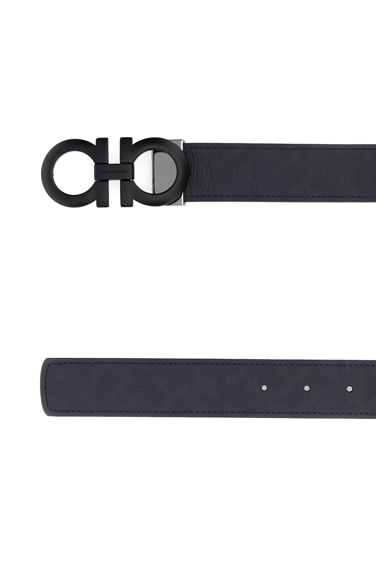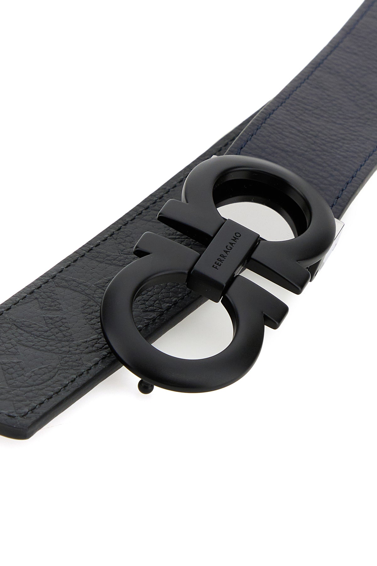 Reversible belt realized in smooth leather characterized by Gancini motif in relief on the entire surface enriched by Gancini metal buckle.
