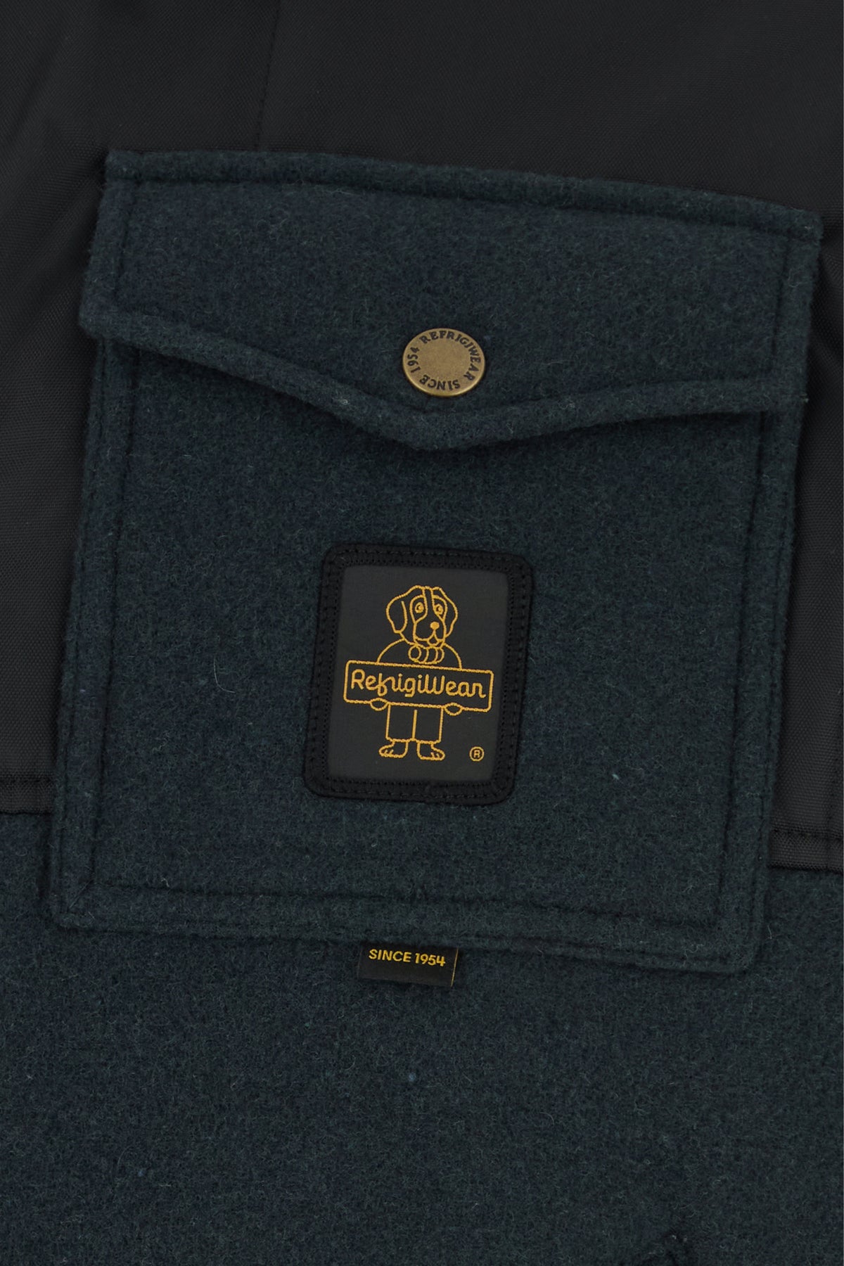 Padded jacket realized in nylon enriched by tonal logoed label on the chest.