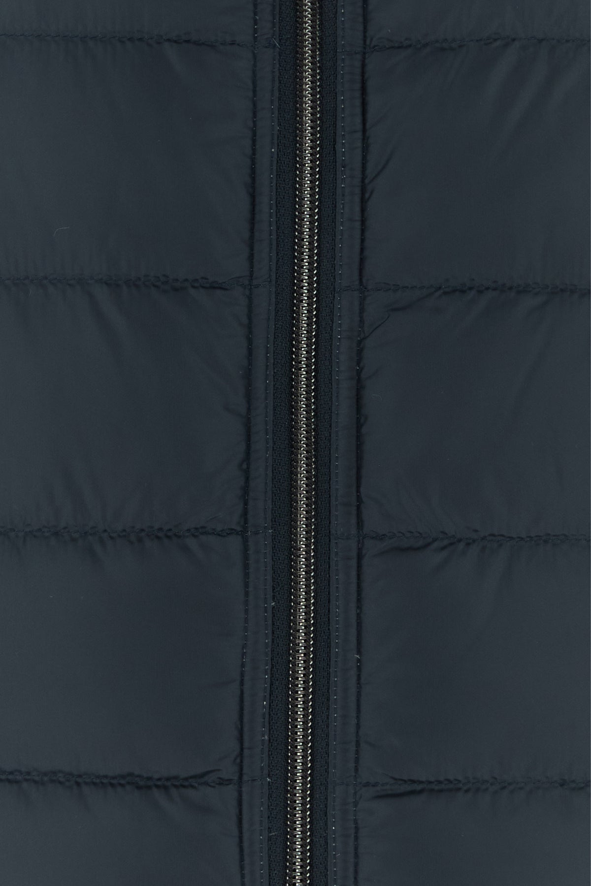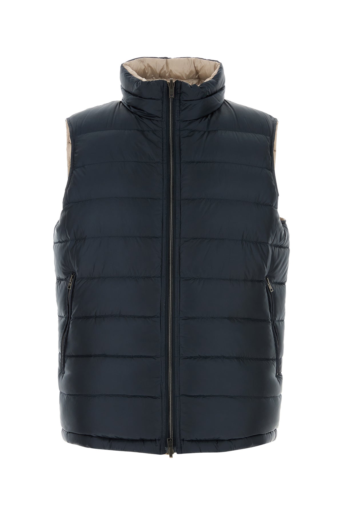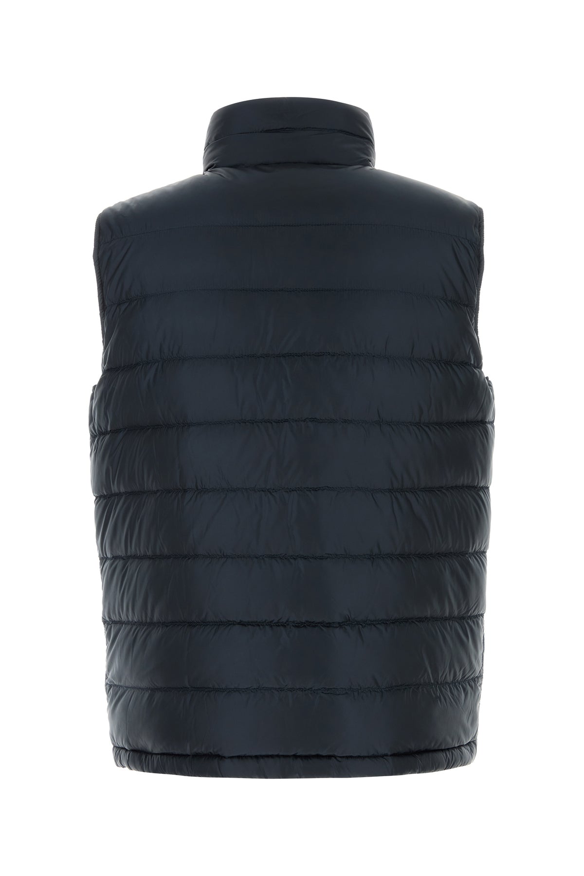 Navy blue nylon sleeveless down jacket