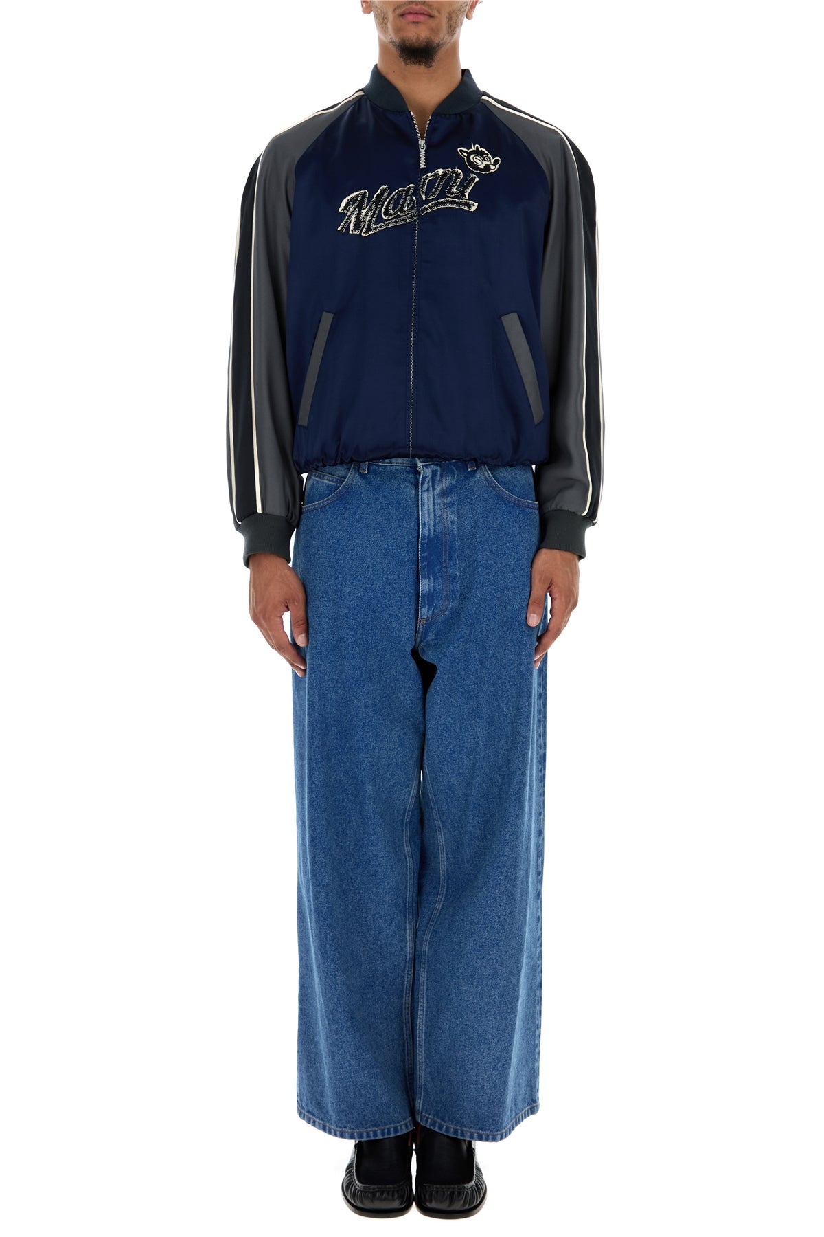 Bomber jacket realized in satin enriched by logoed patch on the chest and at the back.