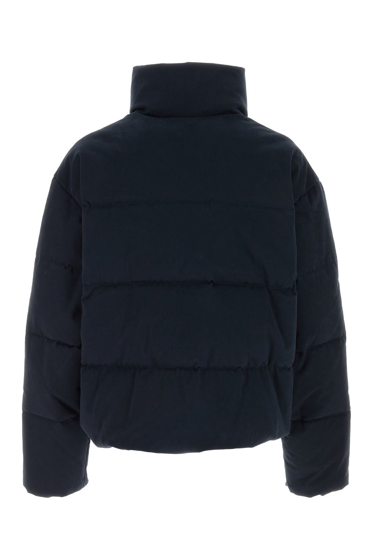 Down jacket realized in quilted stretch cotton characterized by contrasting printed logo on the chest.