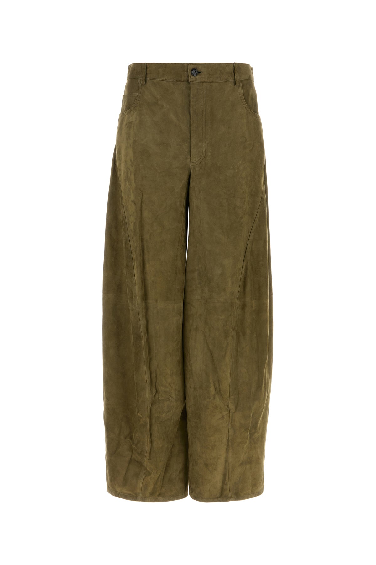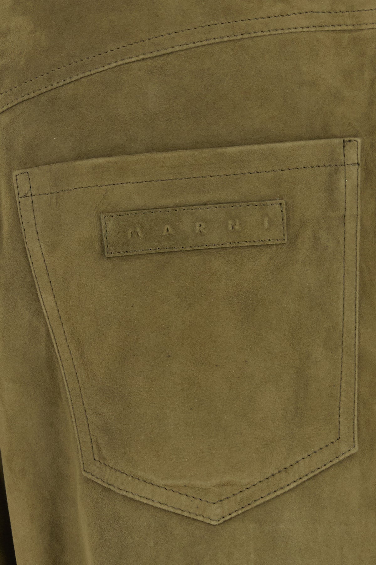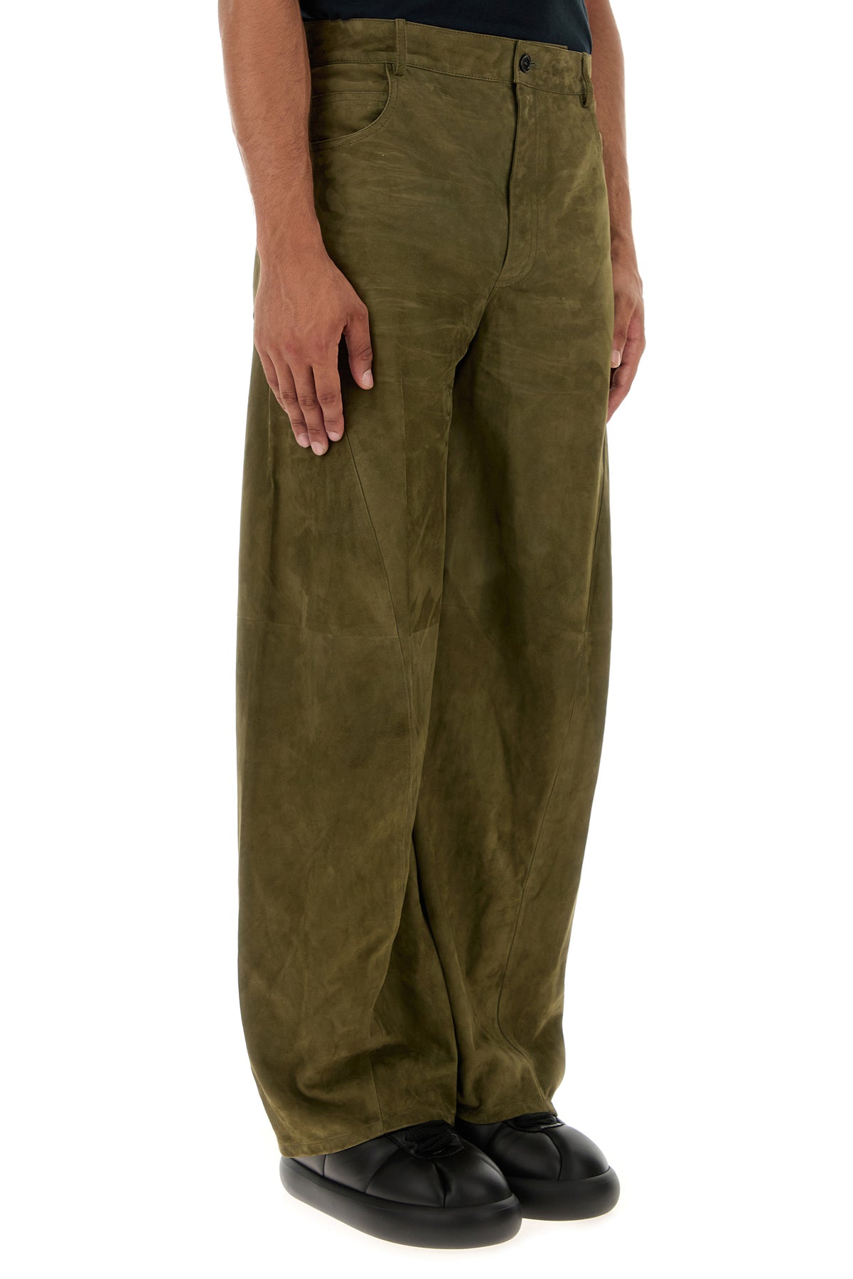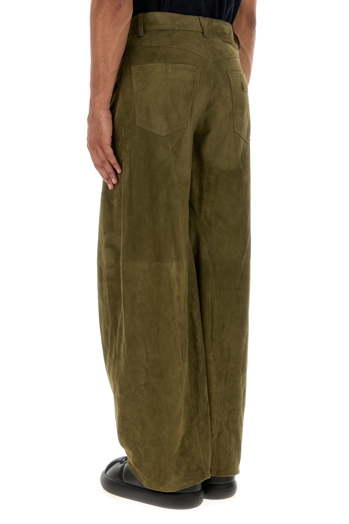 Pant realized in ovine suede enriched by tonal logoed label at the back.