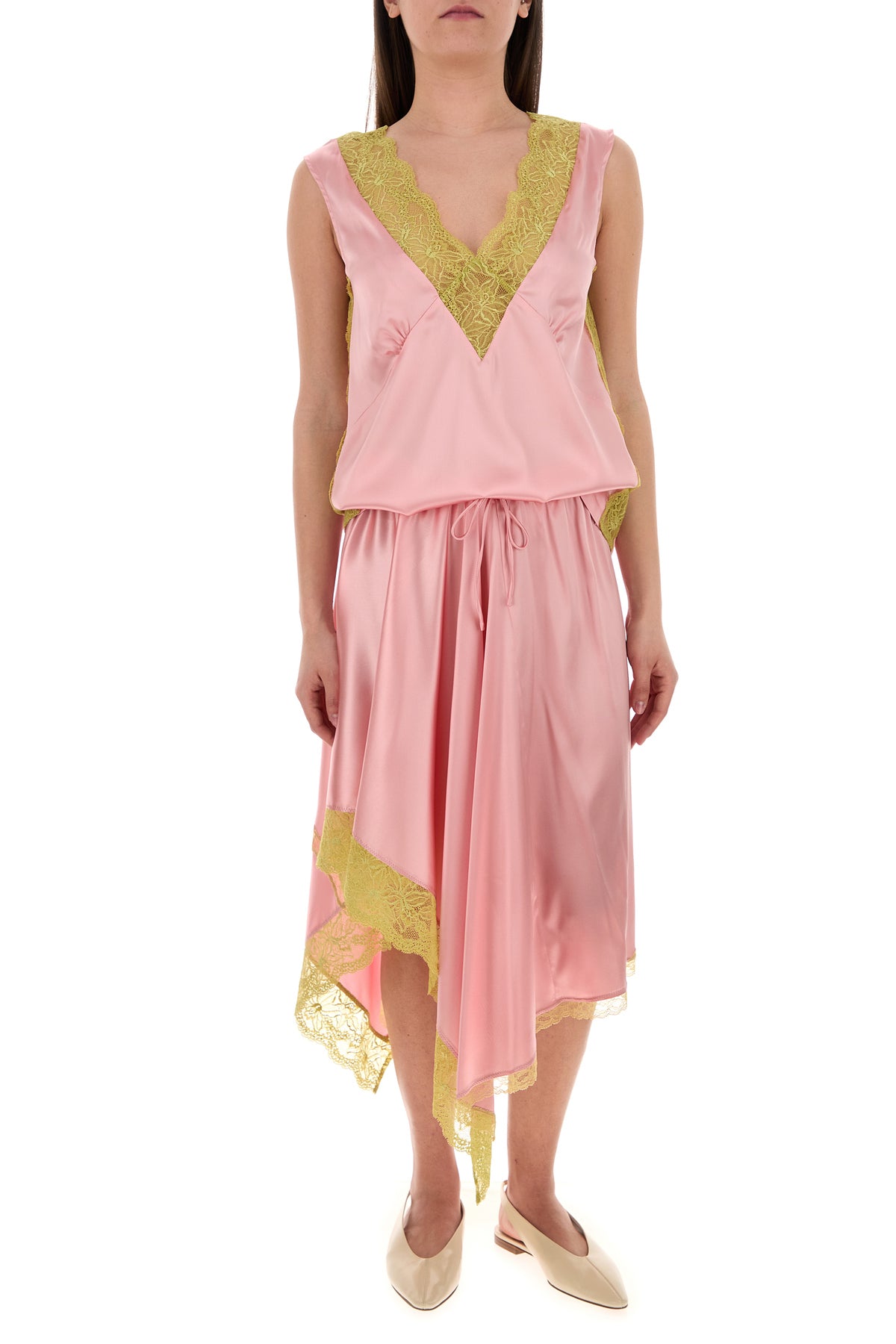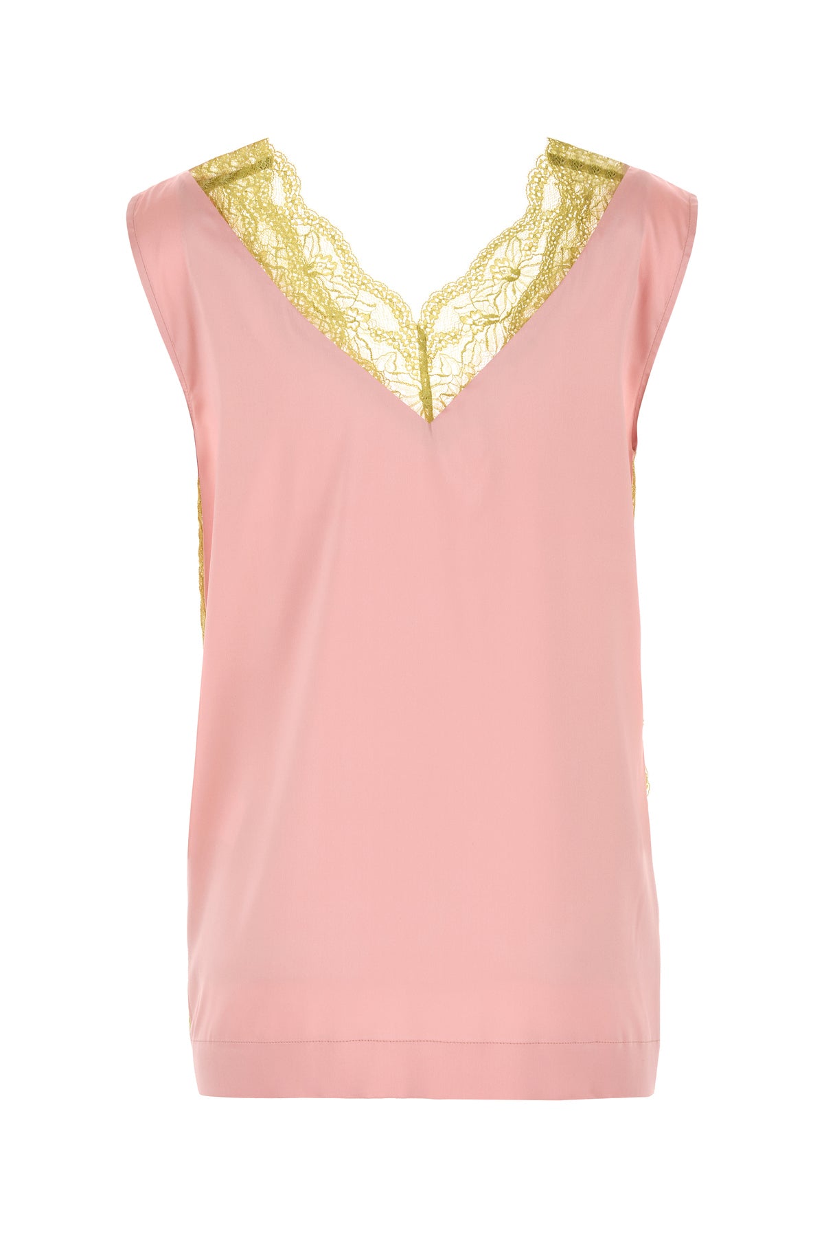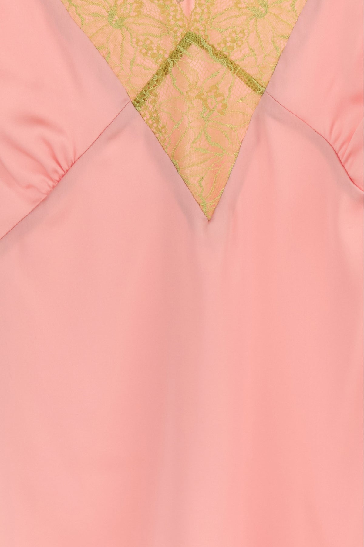 Top realized in stretch silk satin with contrasting lace on the side, on the V neckline and at the back.
