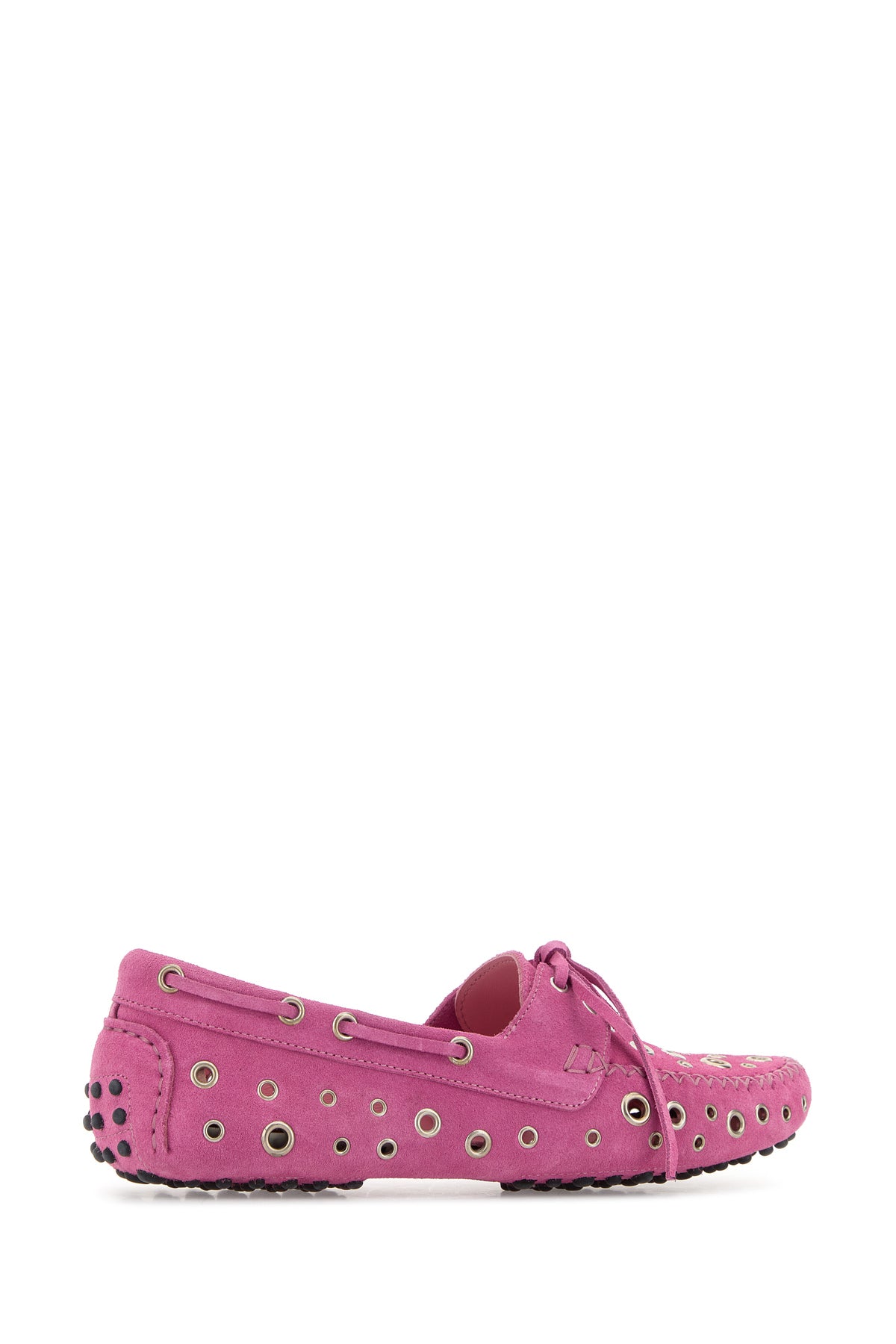 Loafers realized in suede enriched by metal studs on the entire surface.