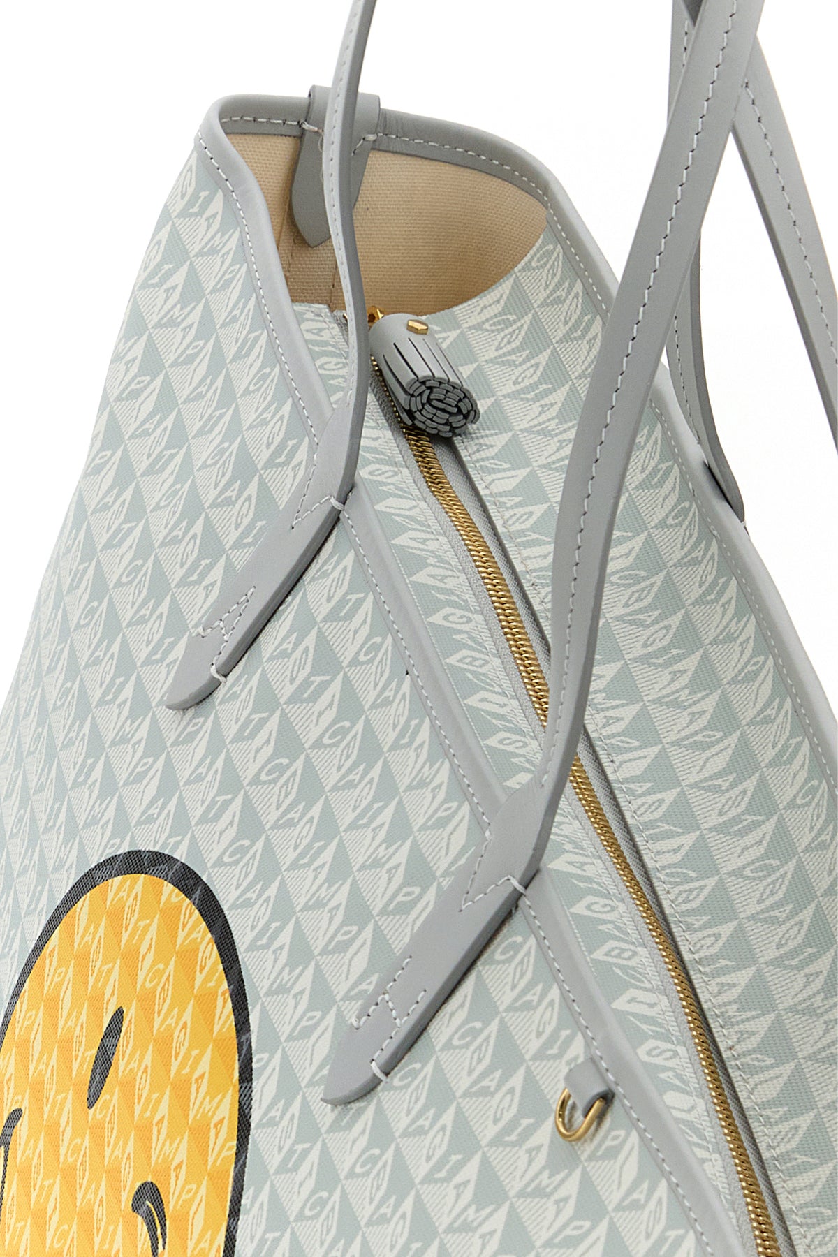 Handbag realized in coated canvas with leather trimmings characterized by Wink print at the front and I am a Plastic Bag print on the entire surface.