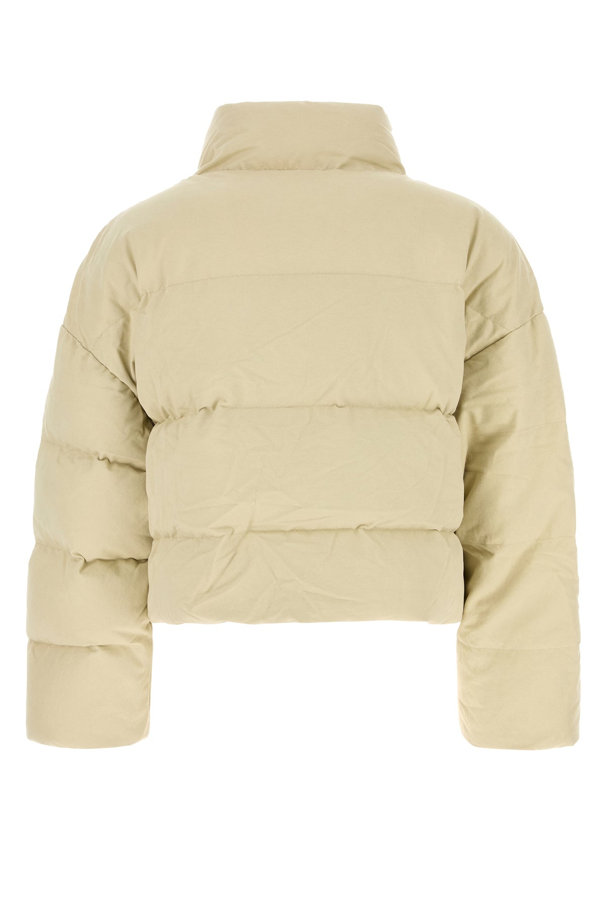 Down jacket realized in quilted pure cotton characterized by high collar.