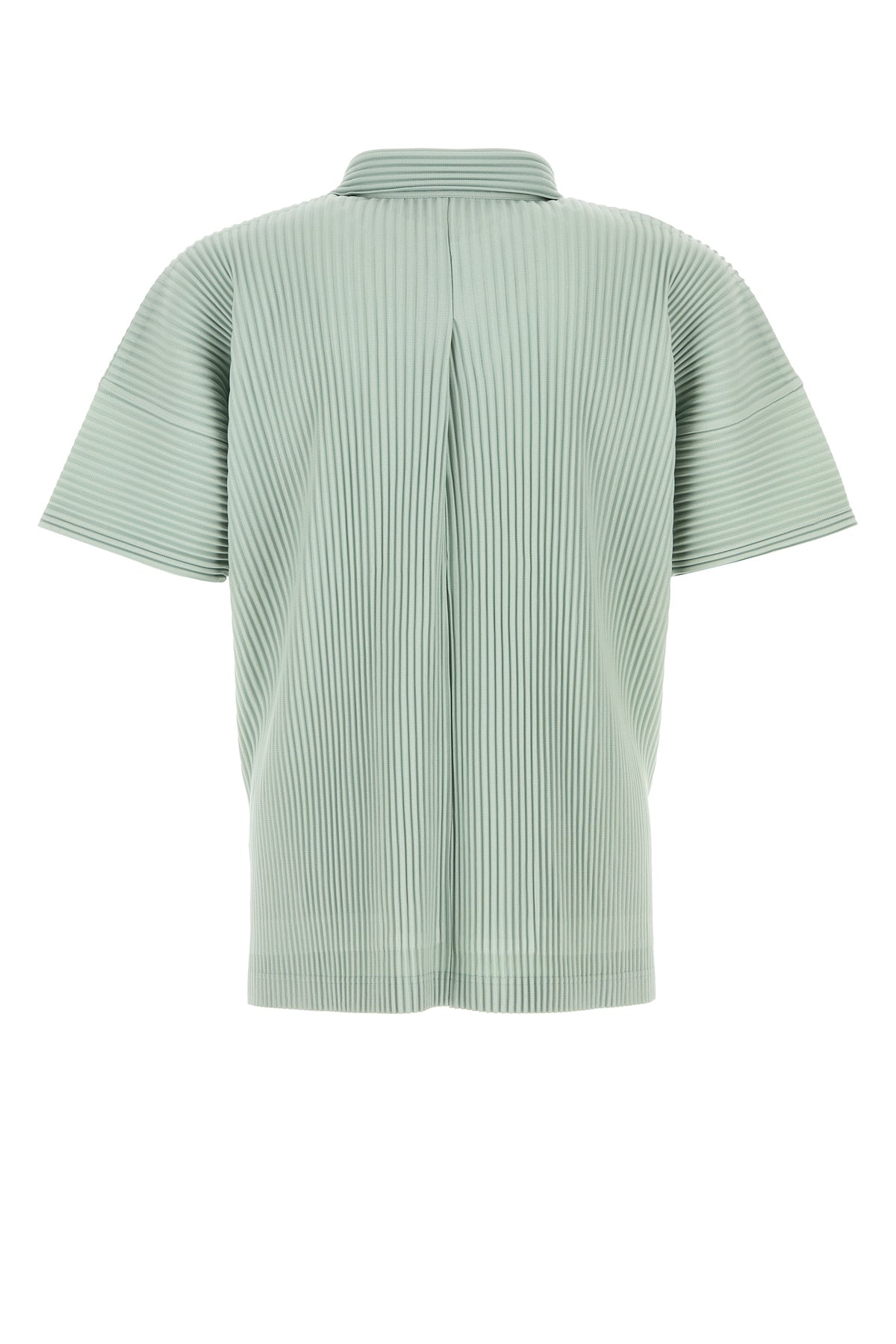 Short-sleeves shirt realized in pleated polyester characterized by collar.