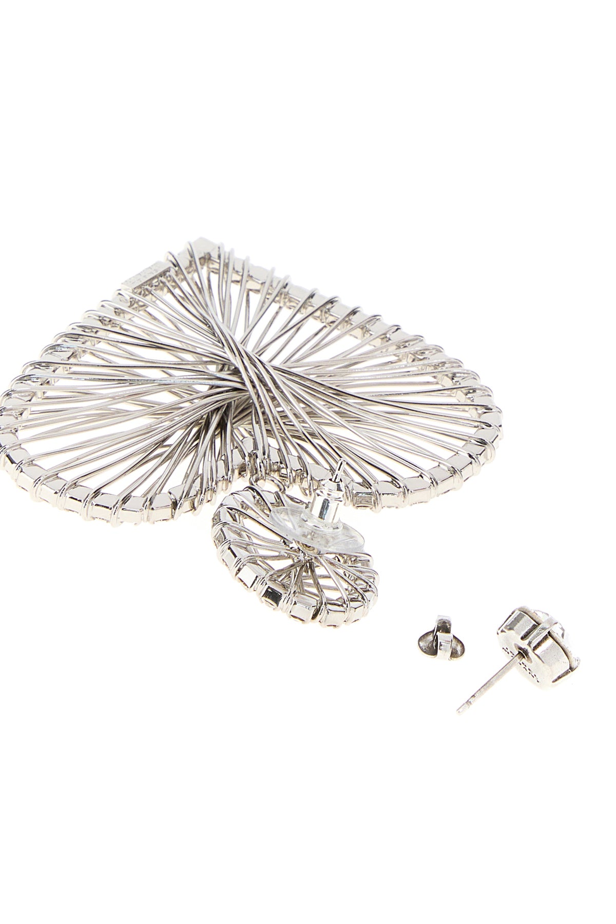 Earrings realized in silver-tone pleated metal enriched by rhinestones.