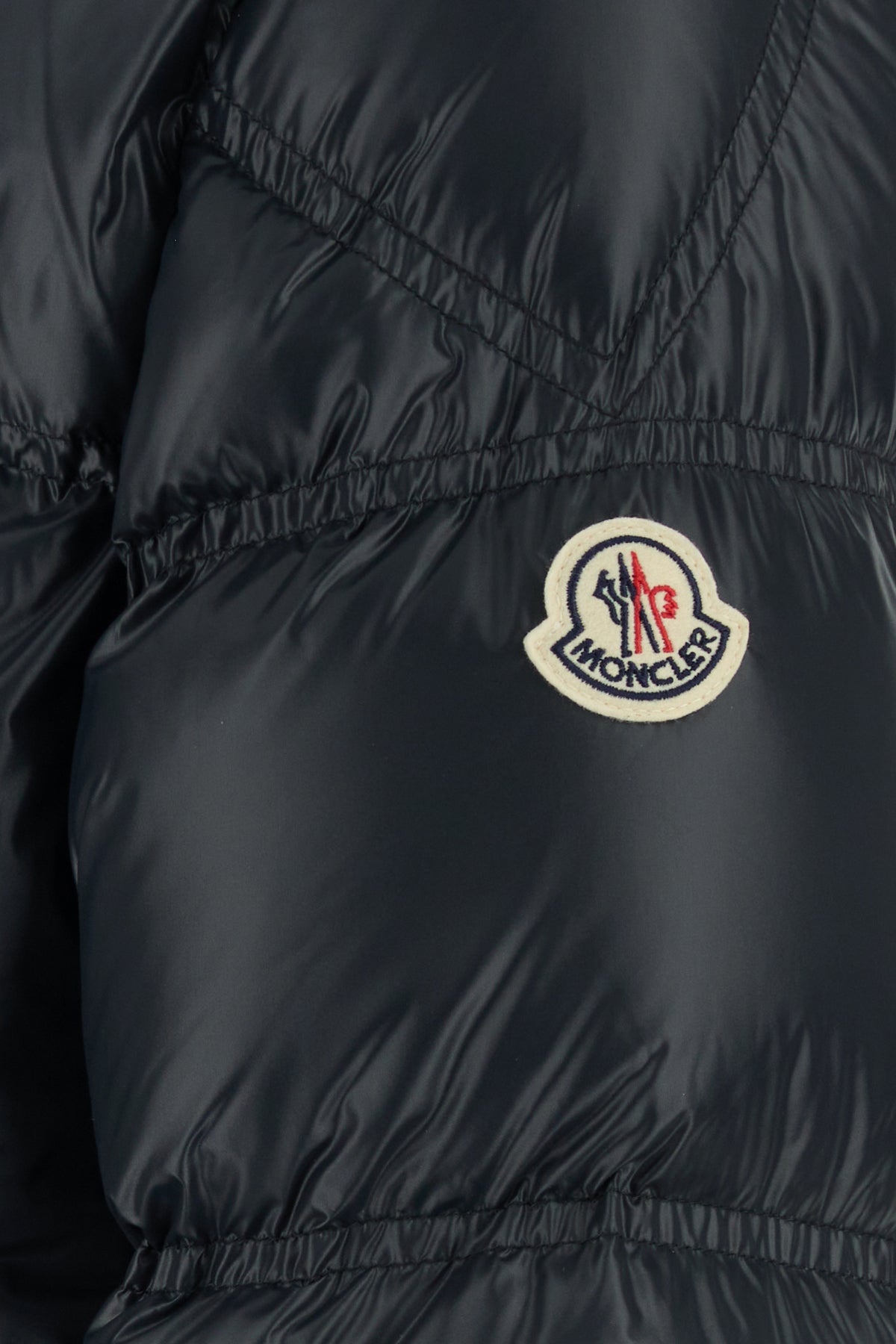 Down jacket realized in quilted nylon enriched by contrasting logoed patch on the sleeve.