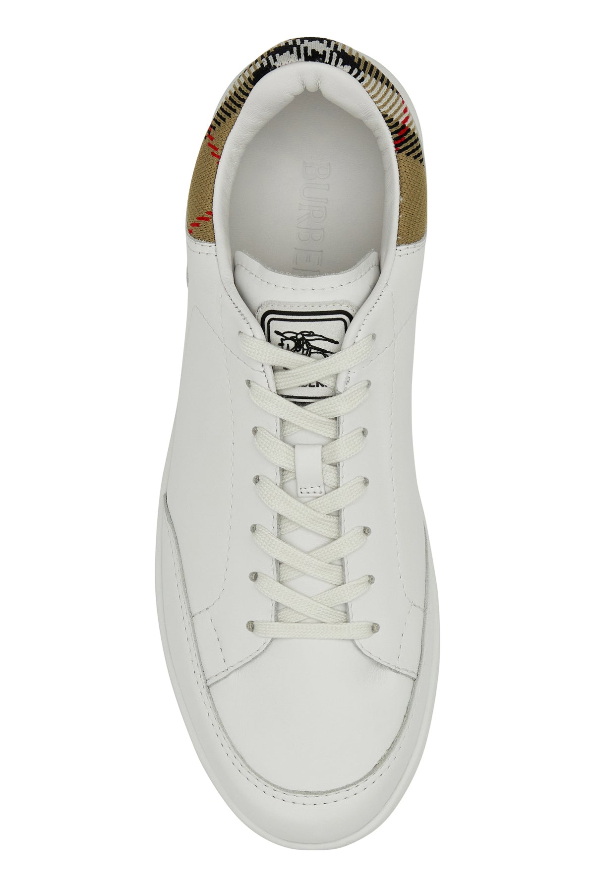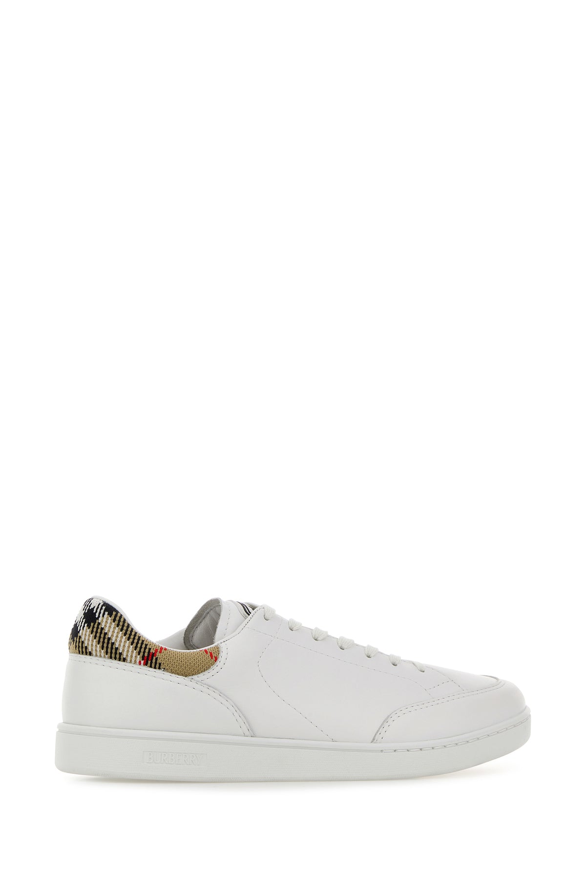 Sneakers realized in smooth leather characterized by Burberry Check embroidery at the back and embossed logo on the sole.