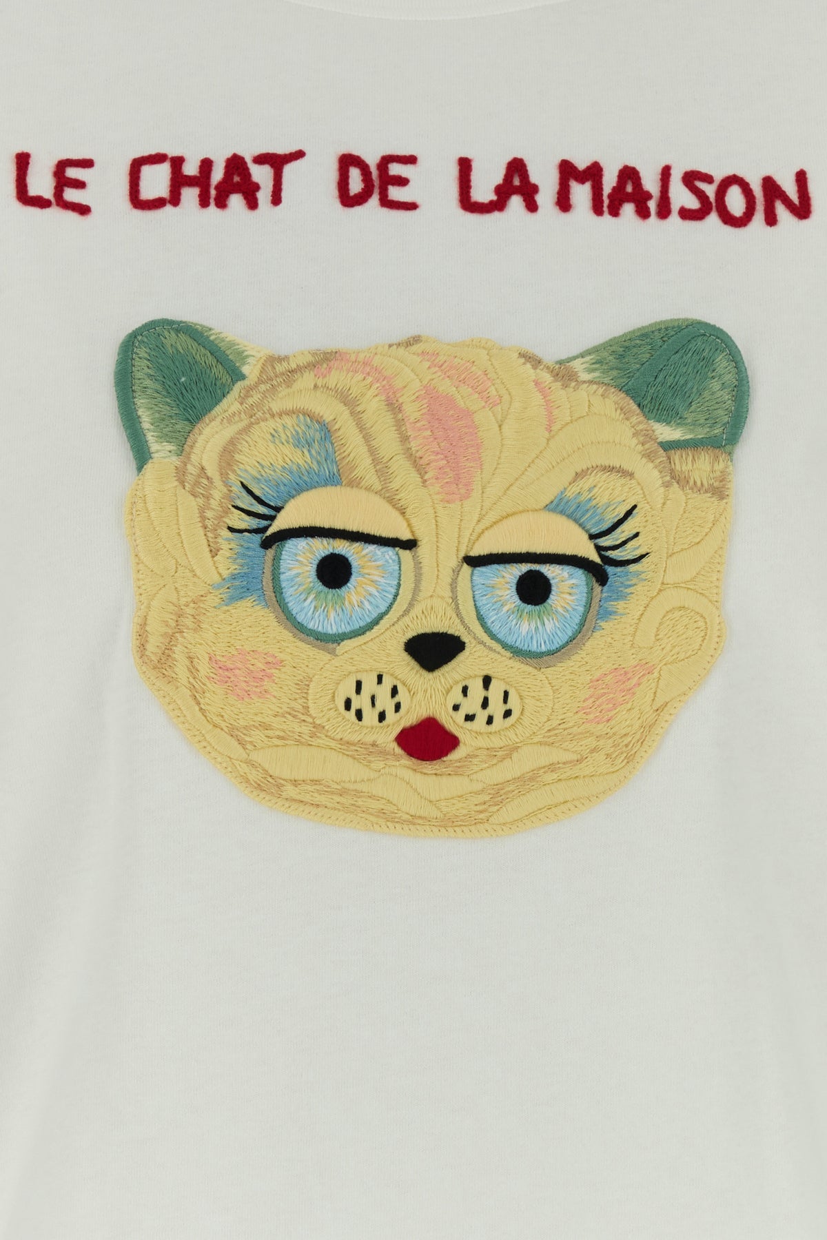 T-shirt realized in pure cotton characterized by Le Chat De La Maison embroidery at the front.