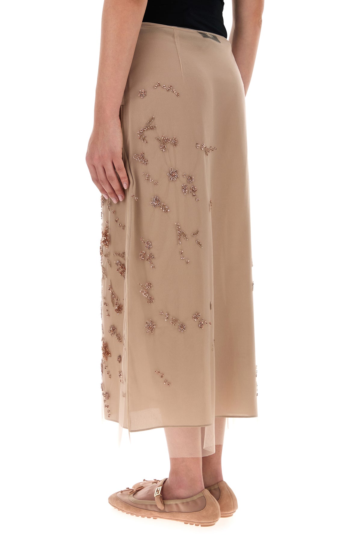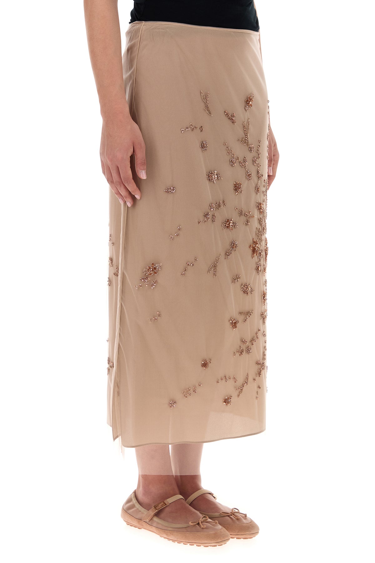 Skirt realized in tulle enriched by floral patch with beads on the entire surface.