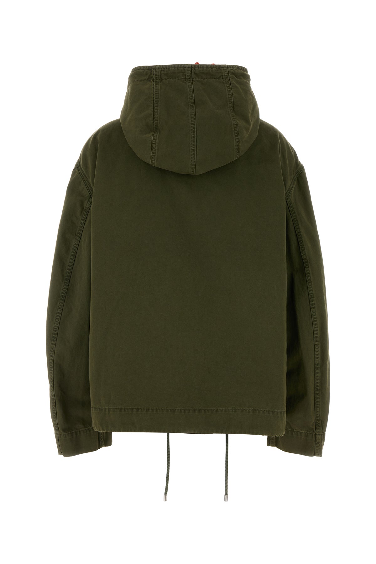 Parka realized in pure cotton characterized by drawstring hood.