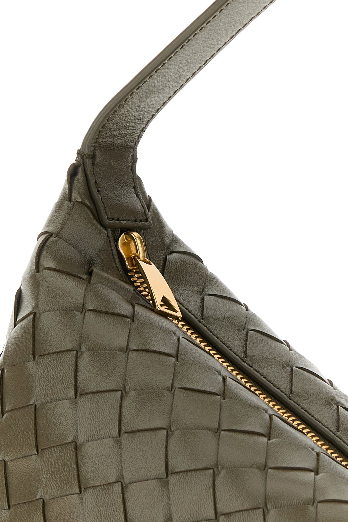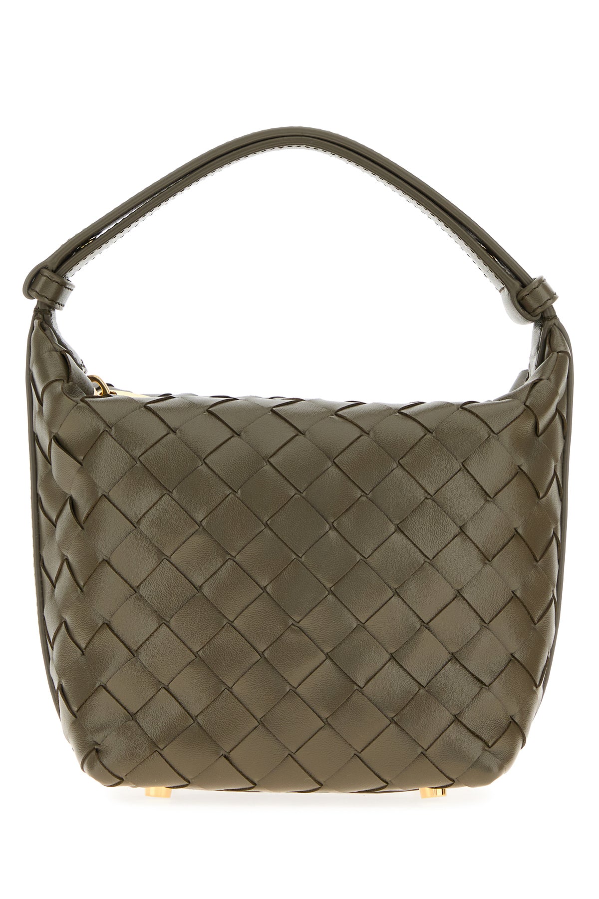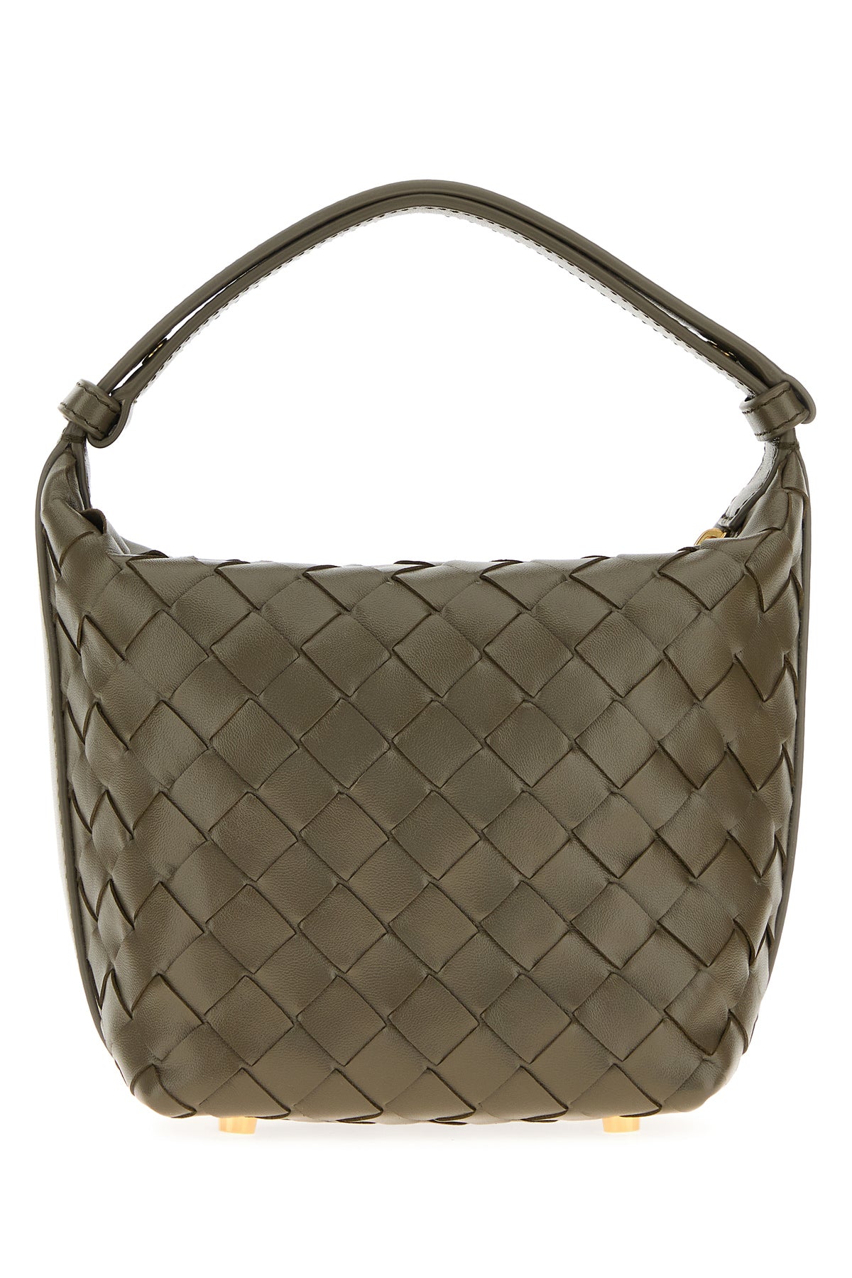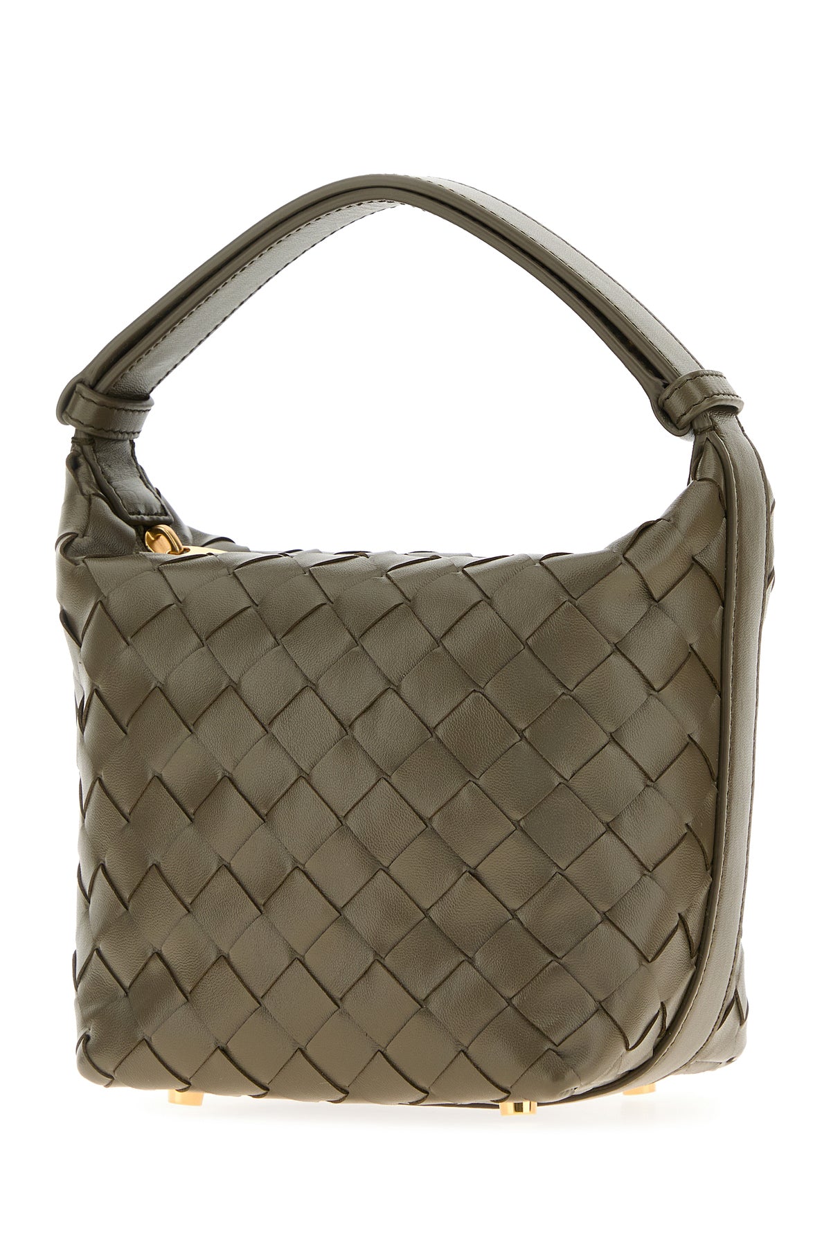 Handbag realized in calf leather characterized by iconic Intrecciato motif on the entire surface.