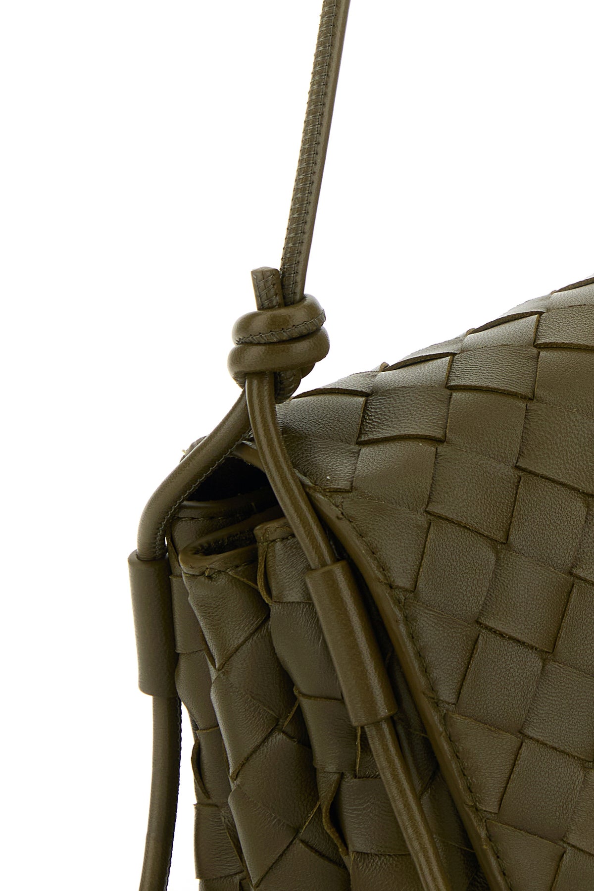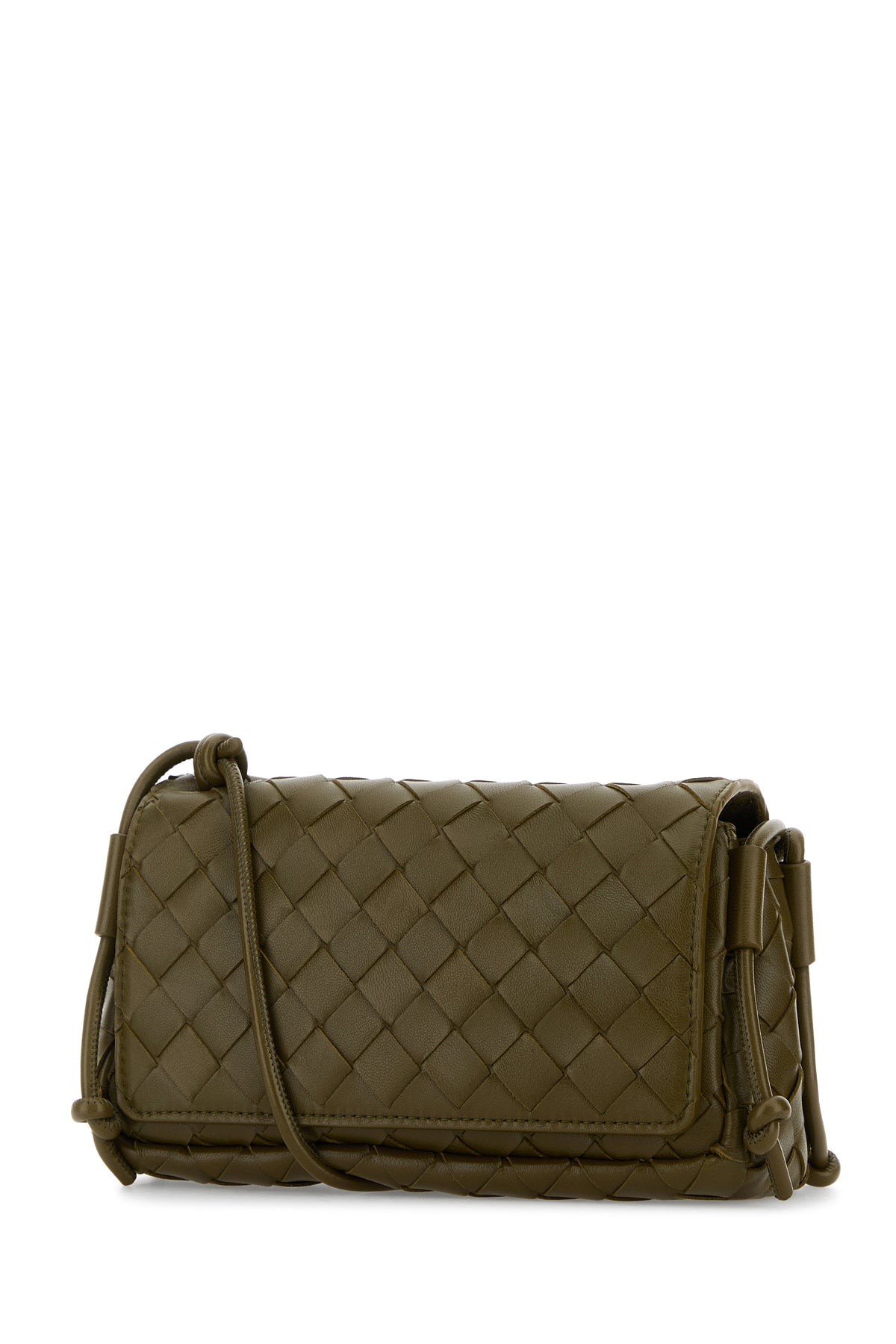 Crossbody bag realized in lamb nappa leather characterized by iconic Intrecciato motif on the entire surface.