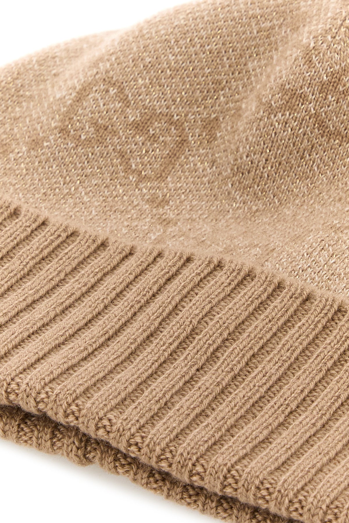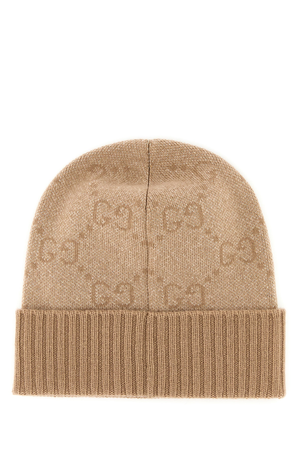 Beanie hat realized in cashmere with lurex threads characterized by GG embroidery on the entire surface.