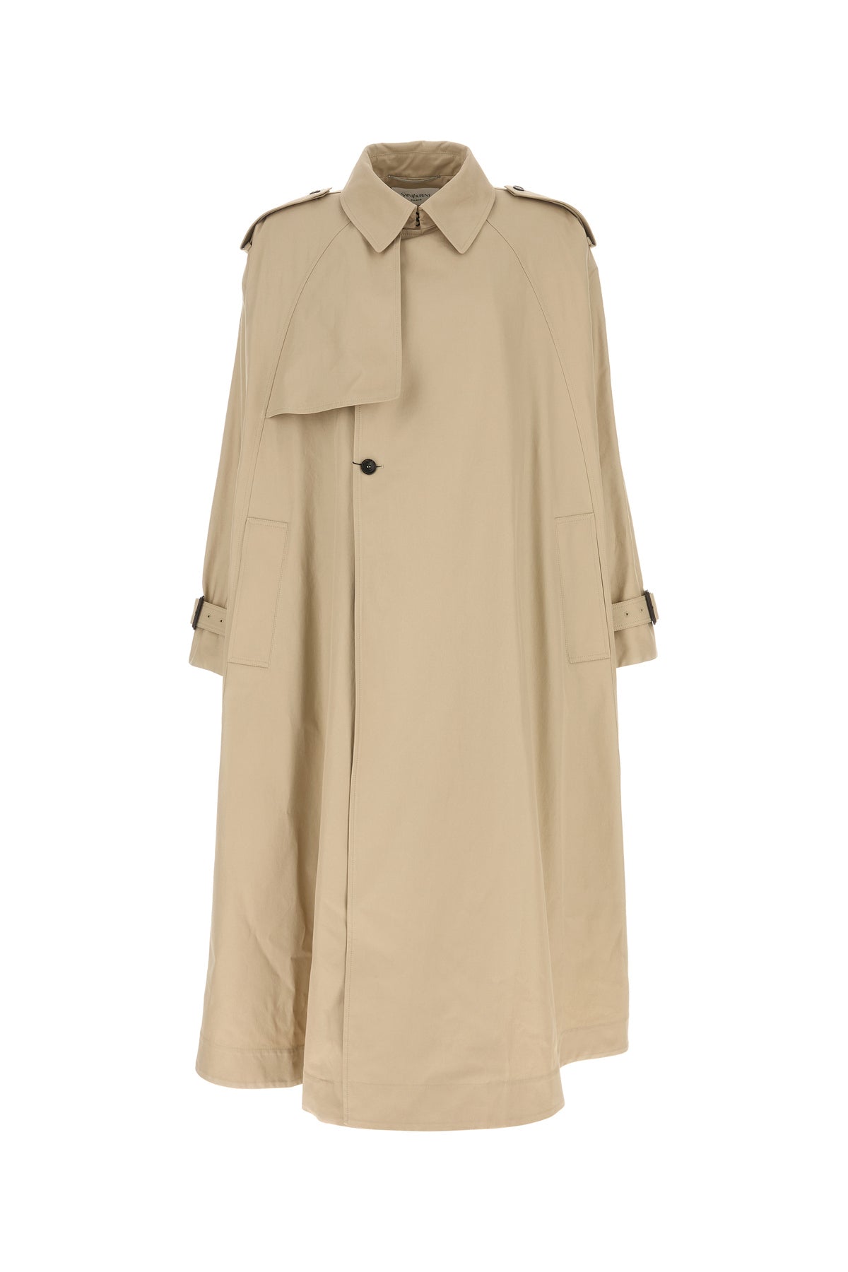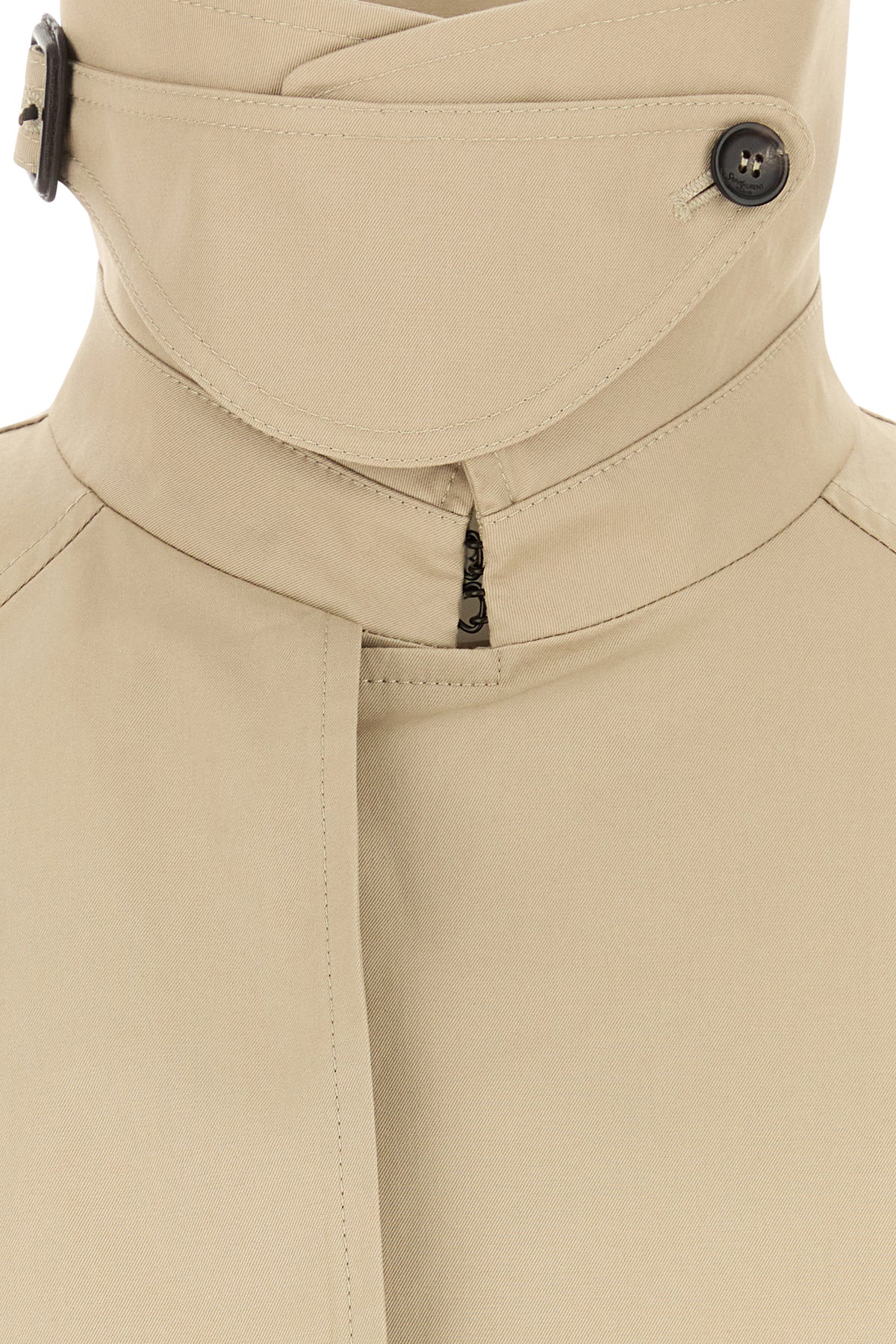 Trench coat realized in pure cotton gabardine characterized by chin strap.