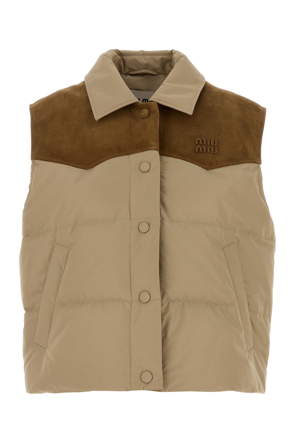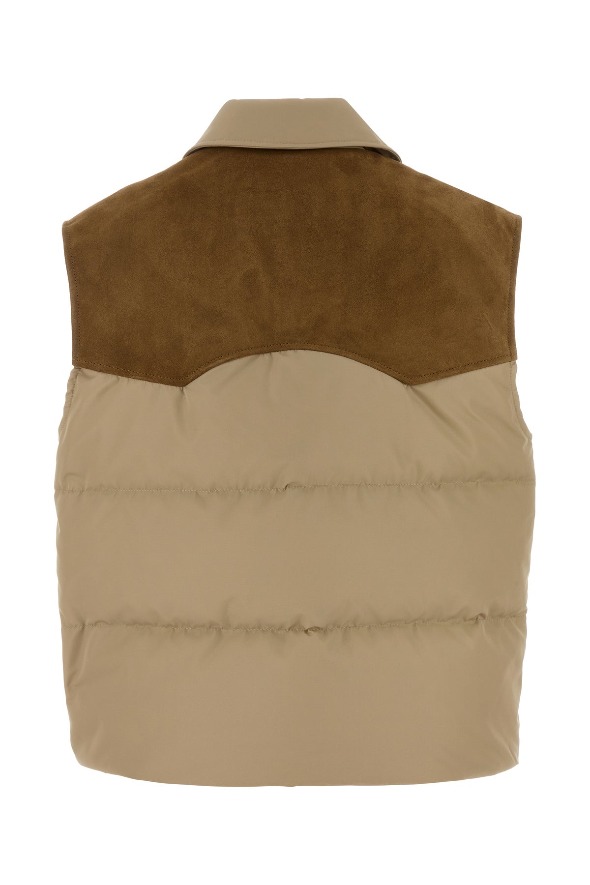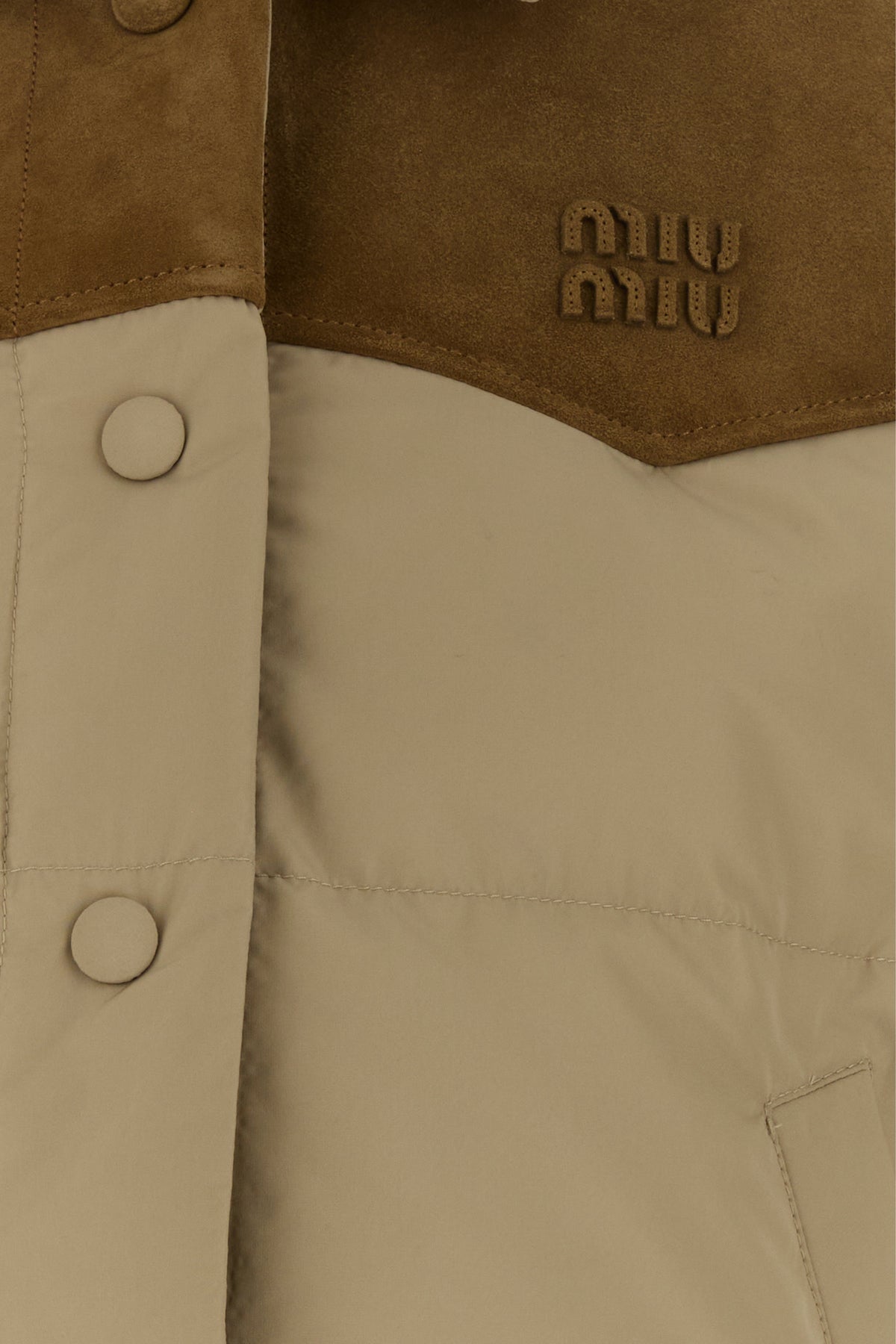 Down jacket realized in quilted polyester with suede insert at the top enriched by logoed patch on the chest.