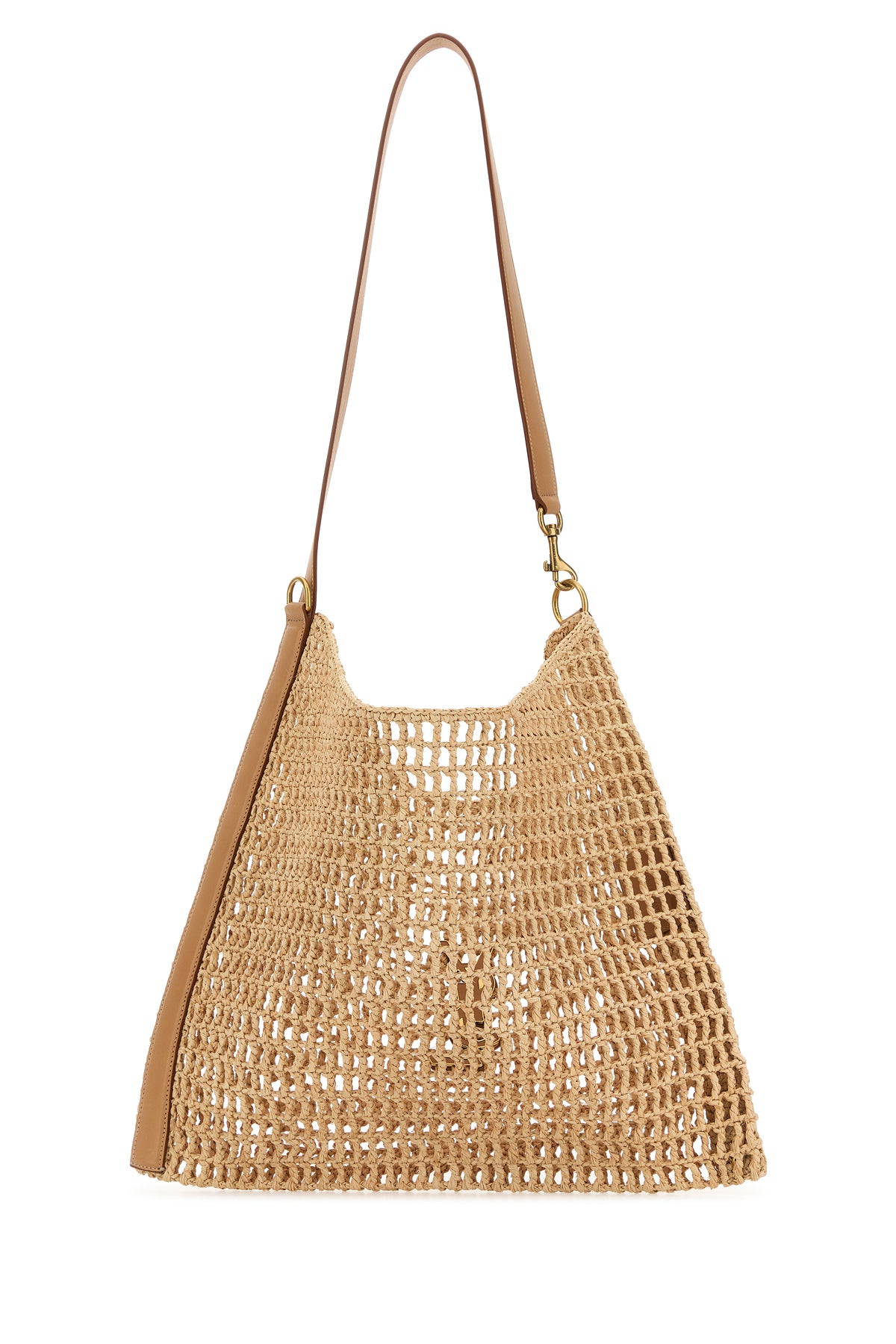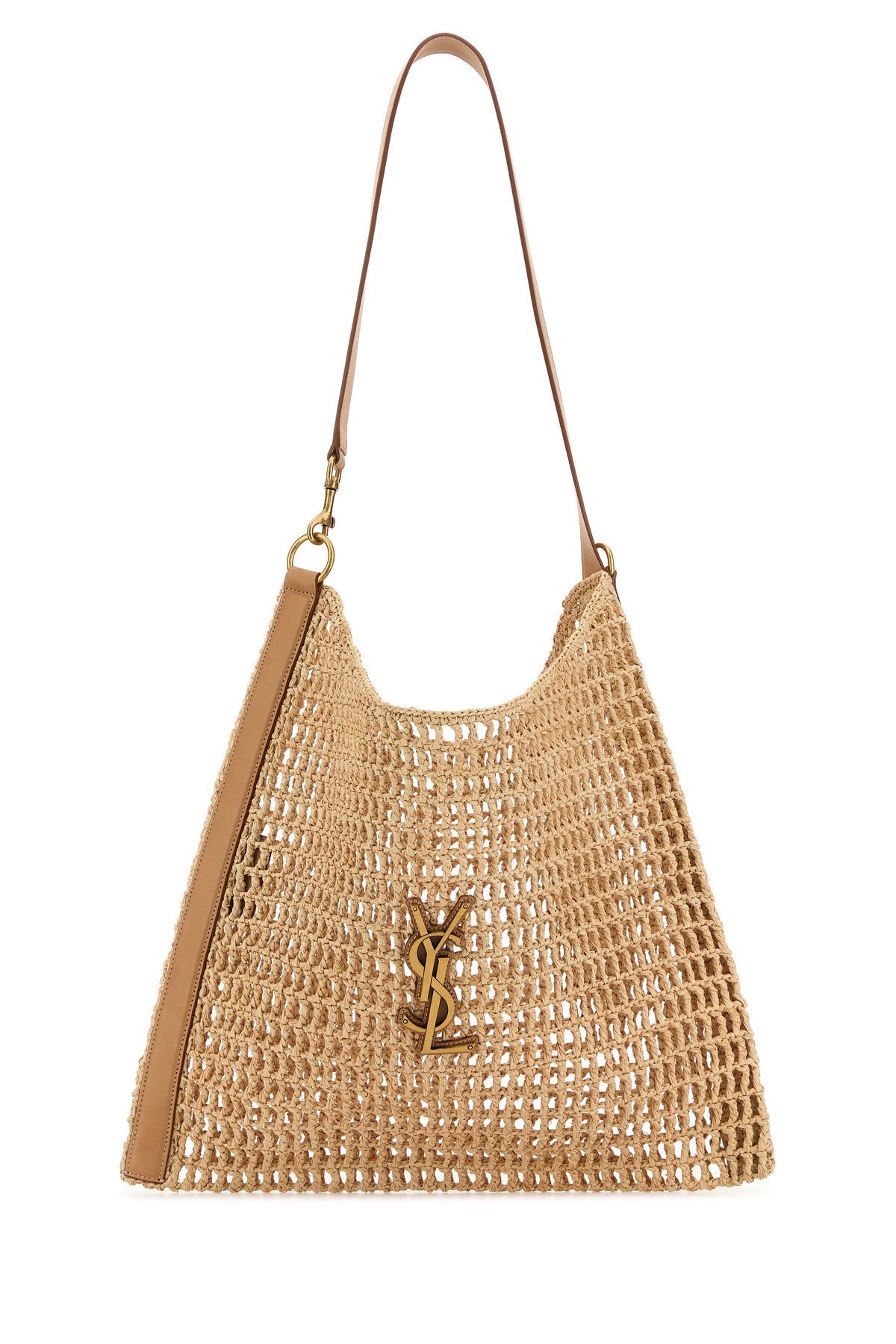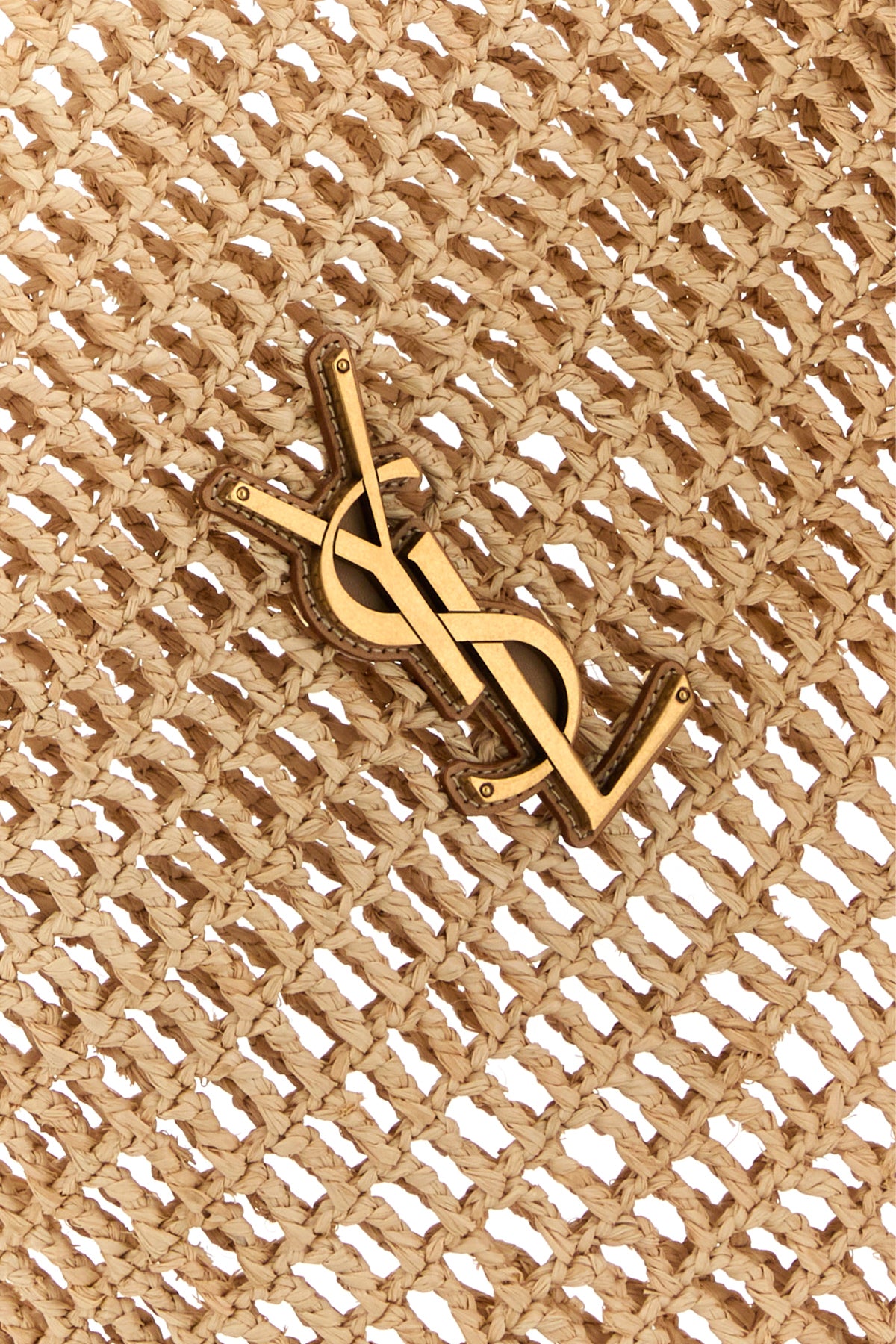 Shopping bag realized in woven raffia and sooth leather enriched by iconic metal Monogram detail ay the front.