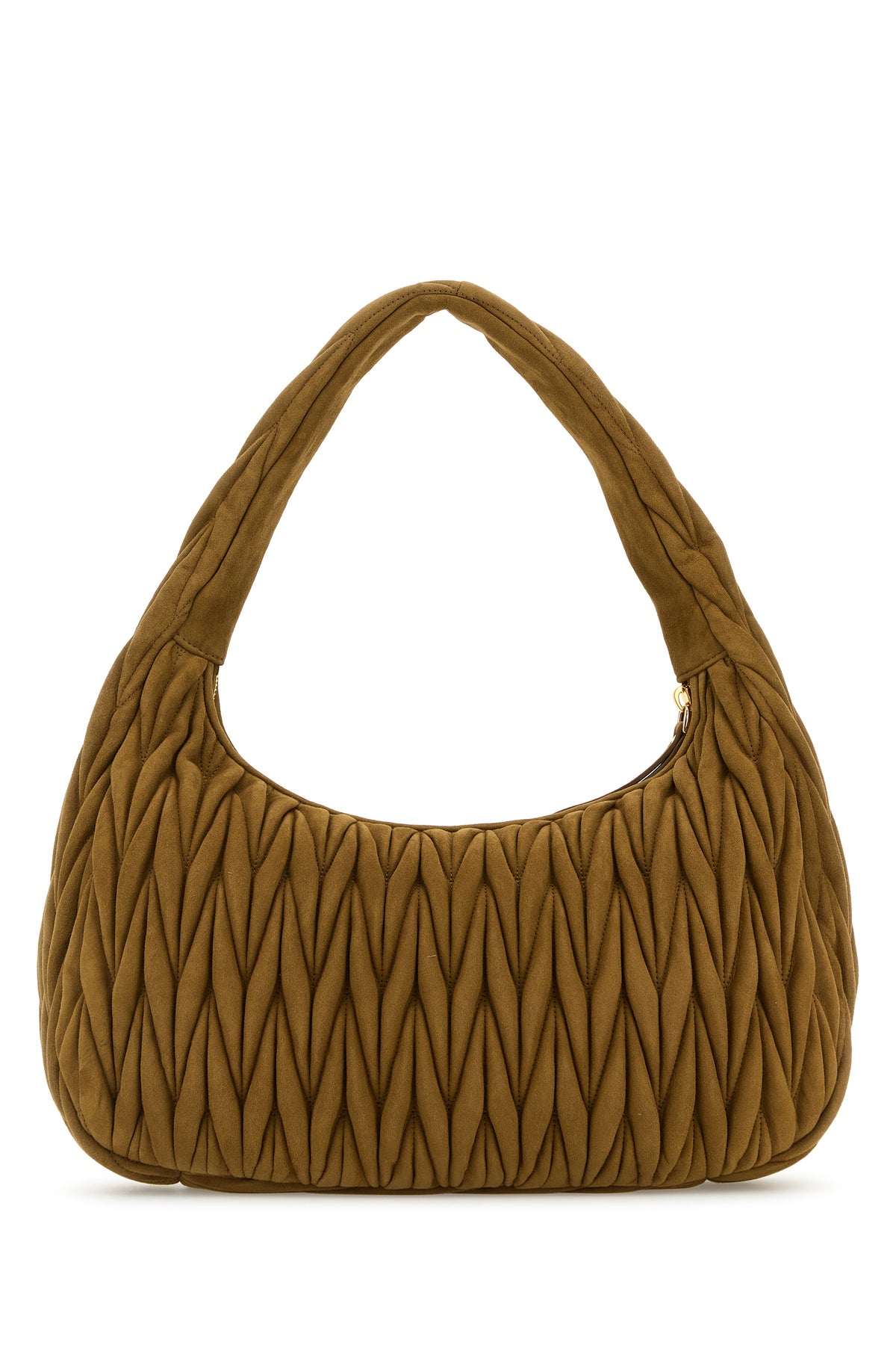 Shoulder bag realized in matelasse suede enriched by metal lettering logo at the front.