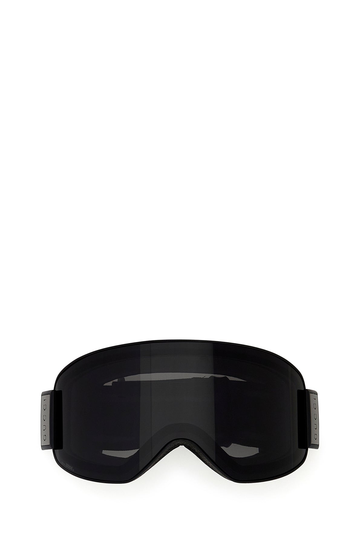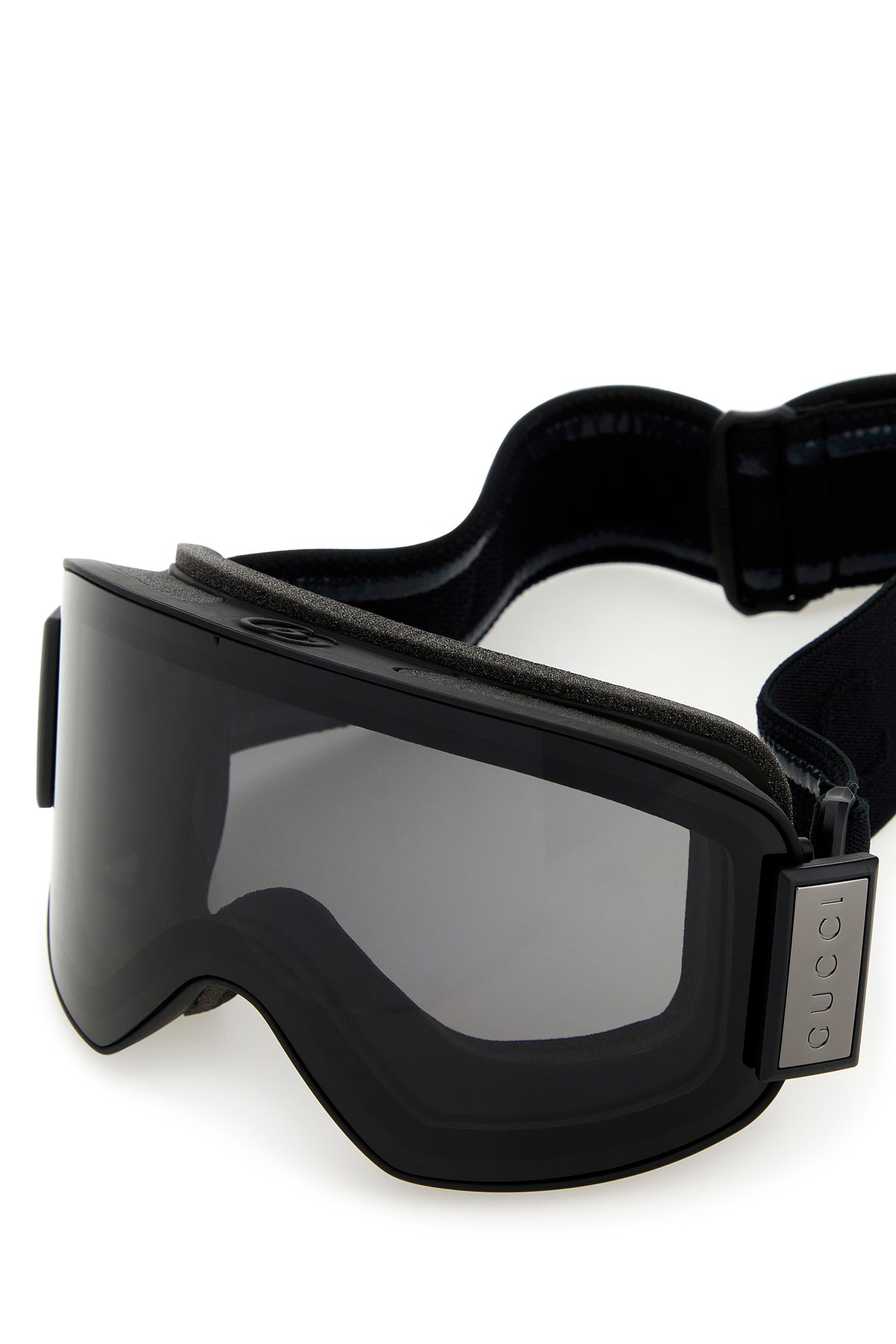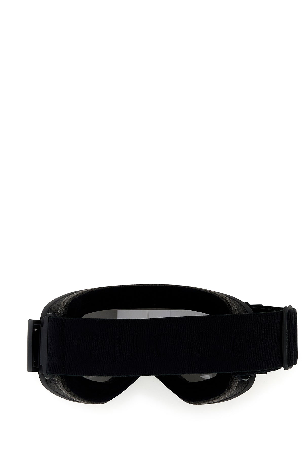 Snow mask realized in acetate characterized by logo in relief at the top enriched by logoed metal plate on the side.