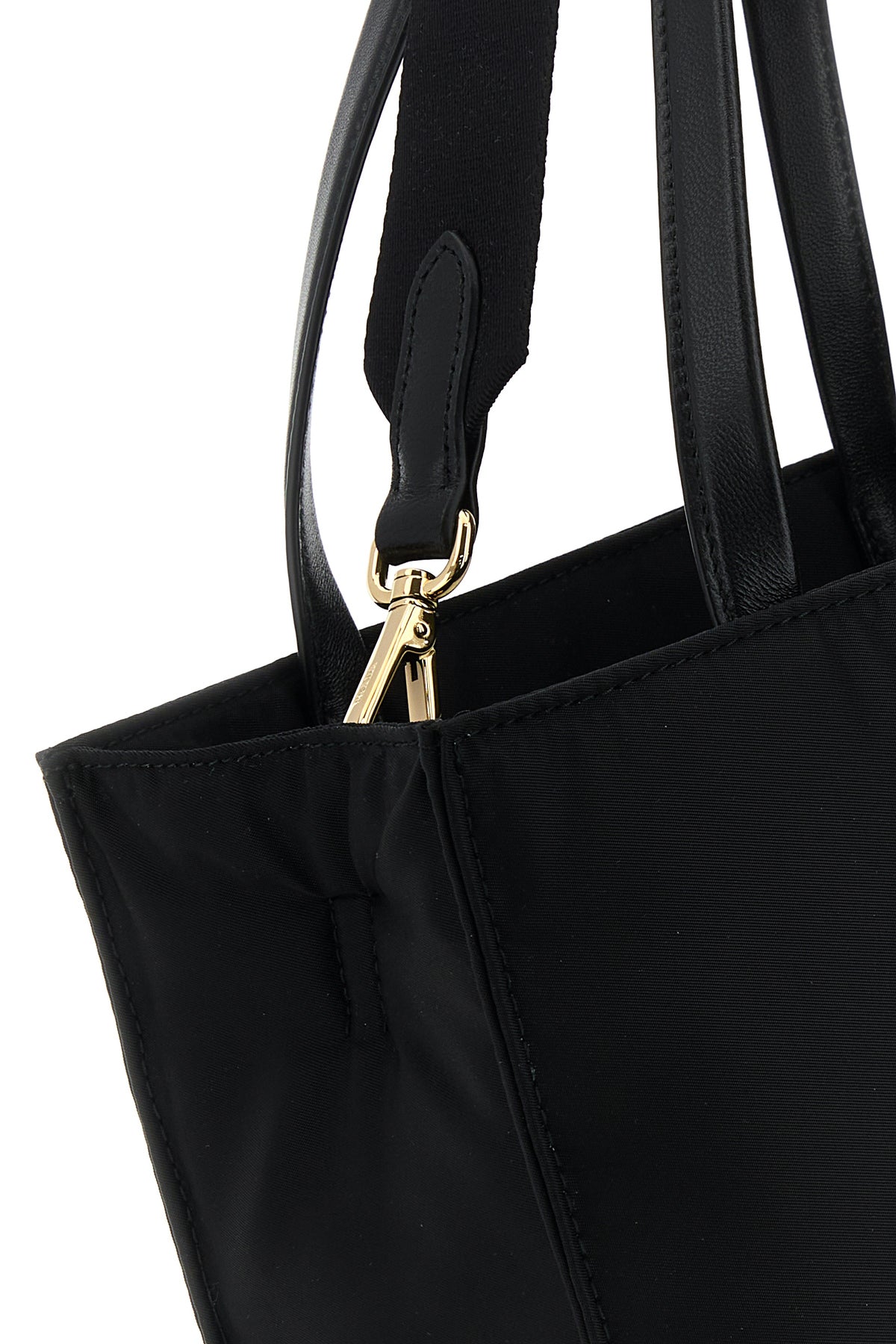 Shopping bag realized in canvas enriched by iconic logoed metal triangle at the front.