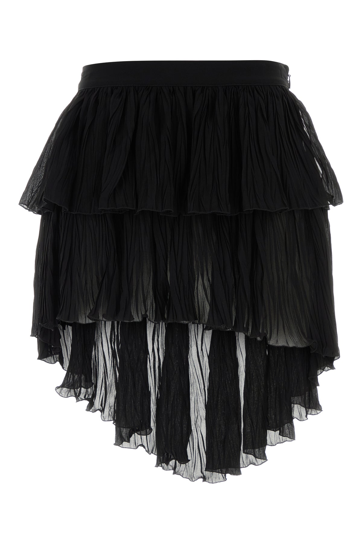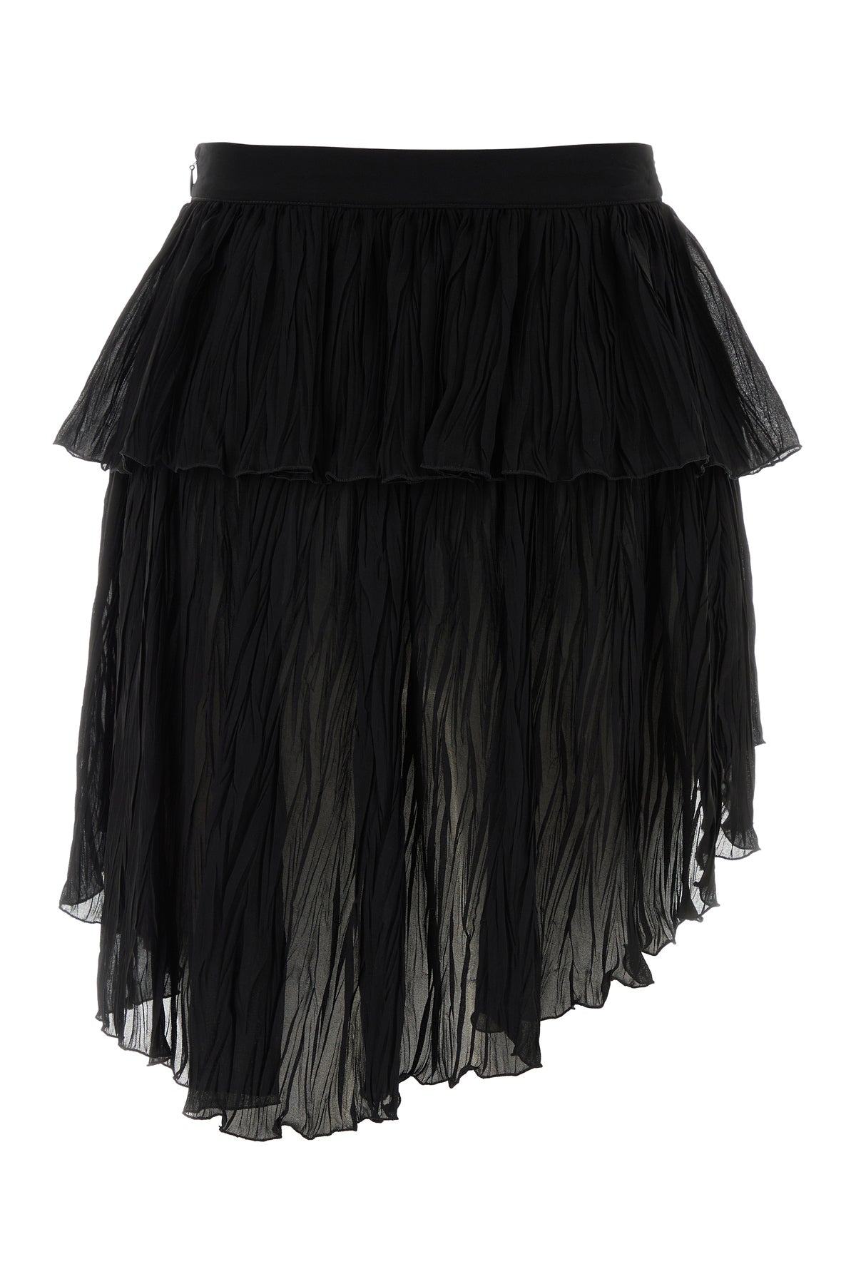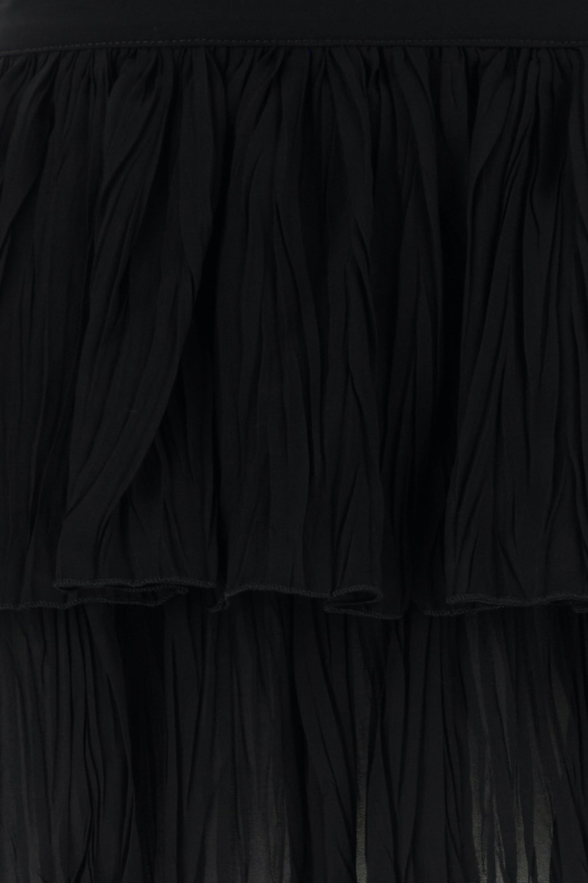 Pleated mini skirt realized in viscose crepe characterized by flounces.
