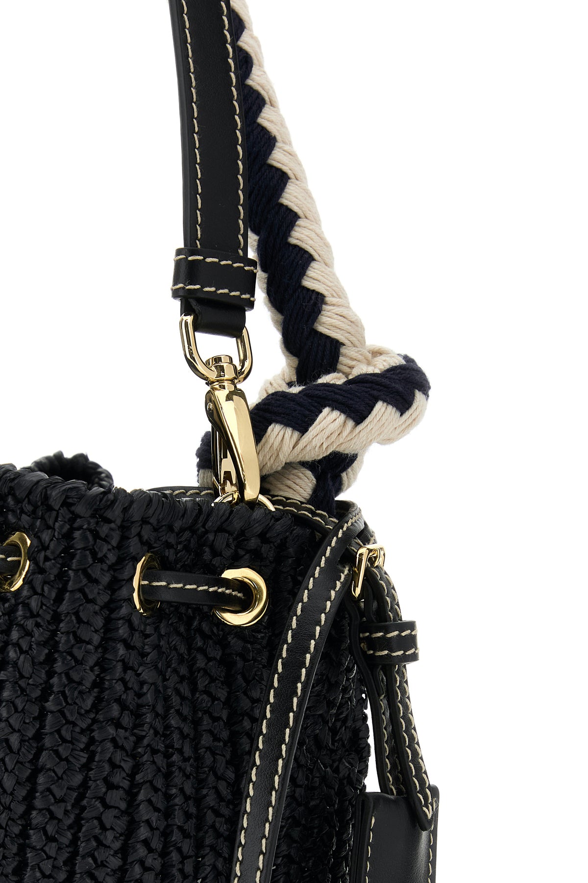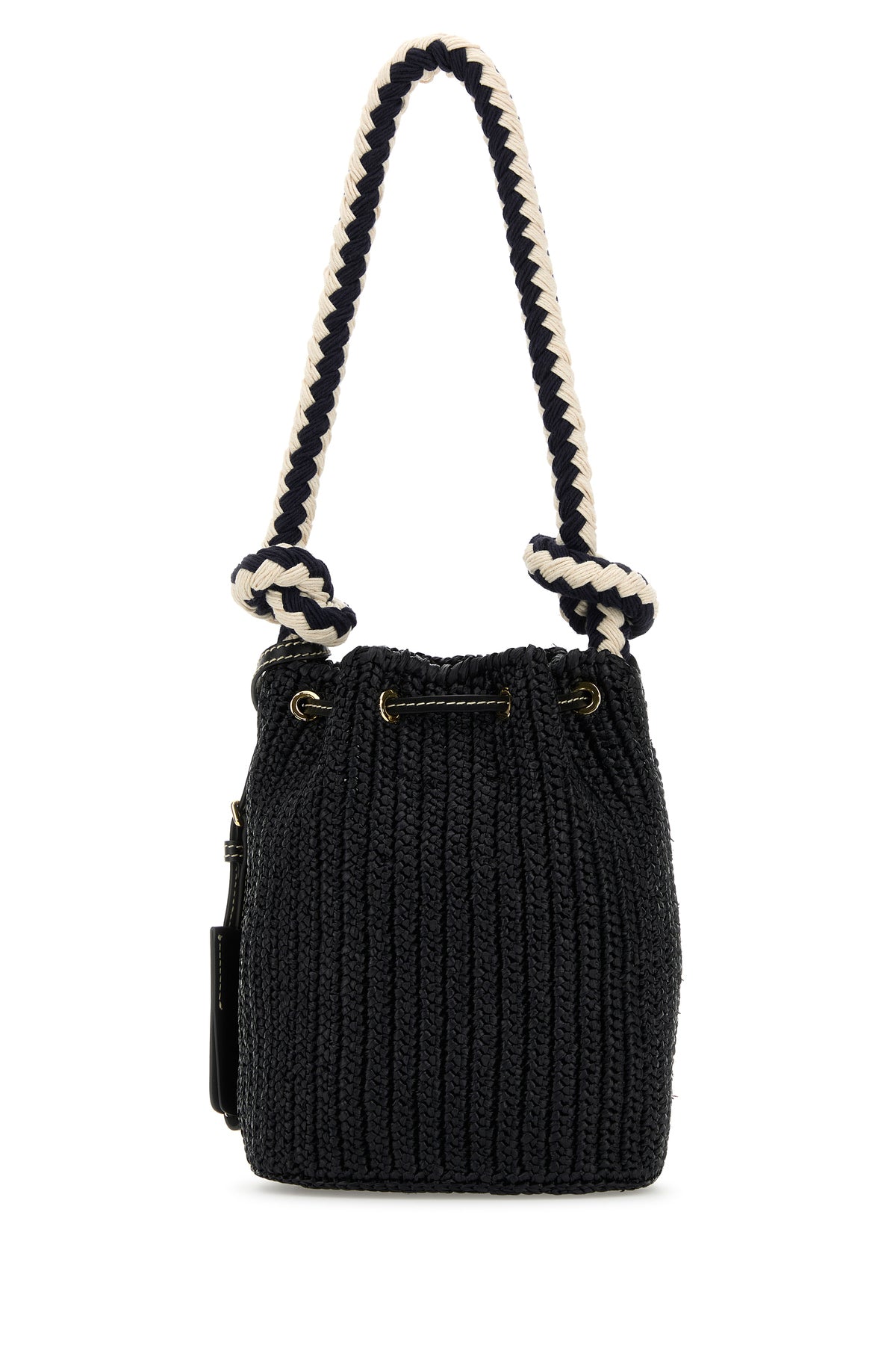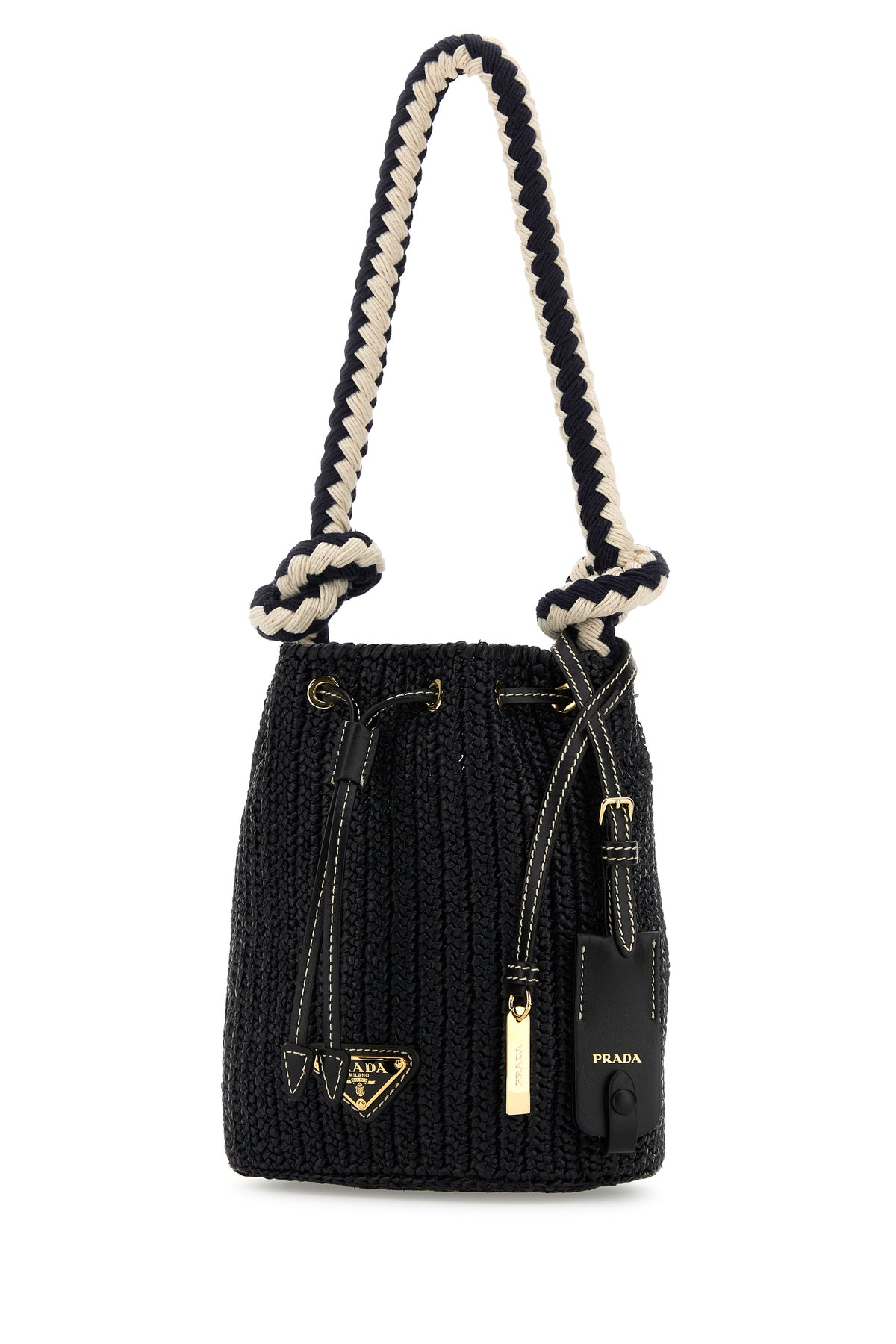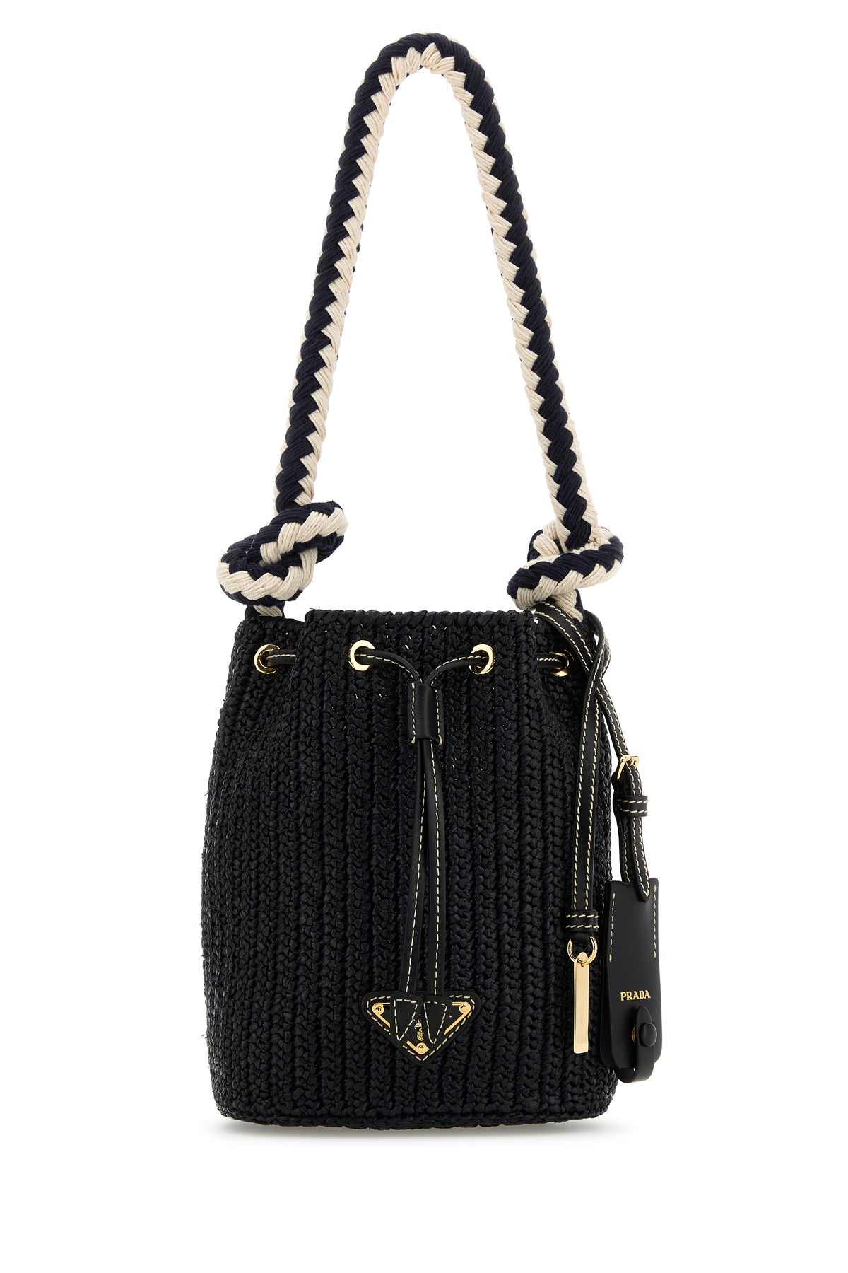 Bucket bag realized in crochet enriched by metal iconic logoed triangle at the front.