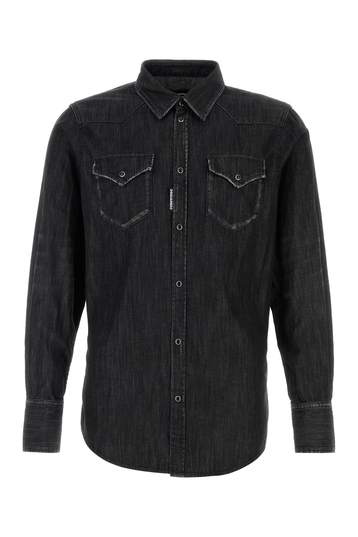 Shirt realized in pure cotton denim enriched by tonal logoed label at the front.