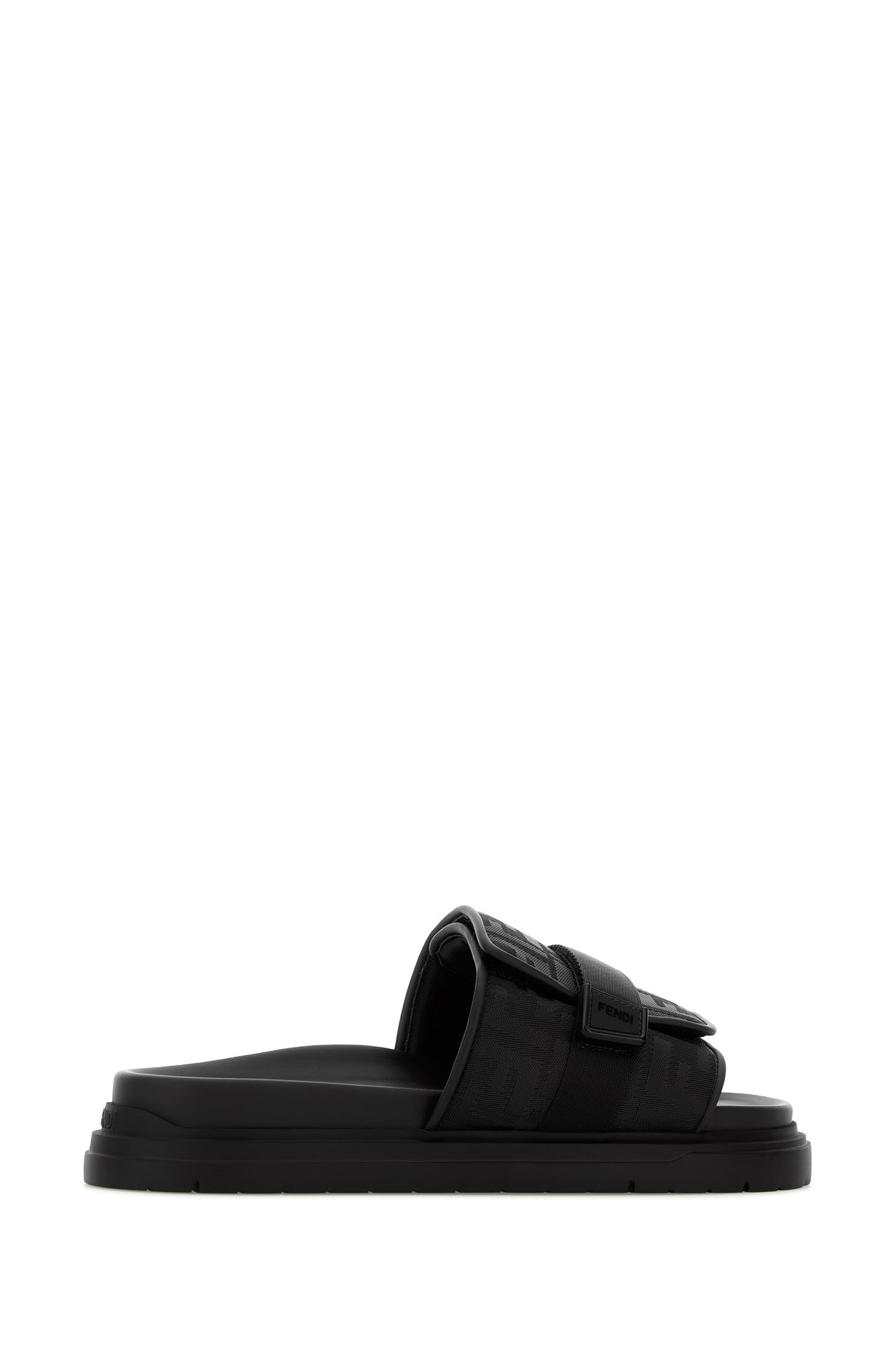 Slippers realized in fabric characterized by tonal FF embroidery on the instep and logo in relief at the back.