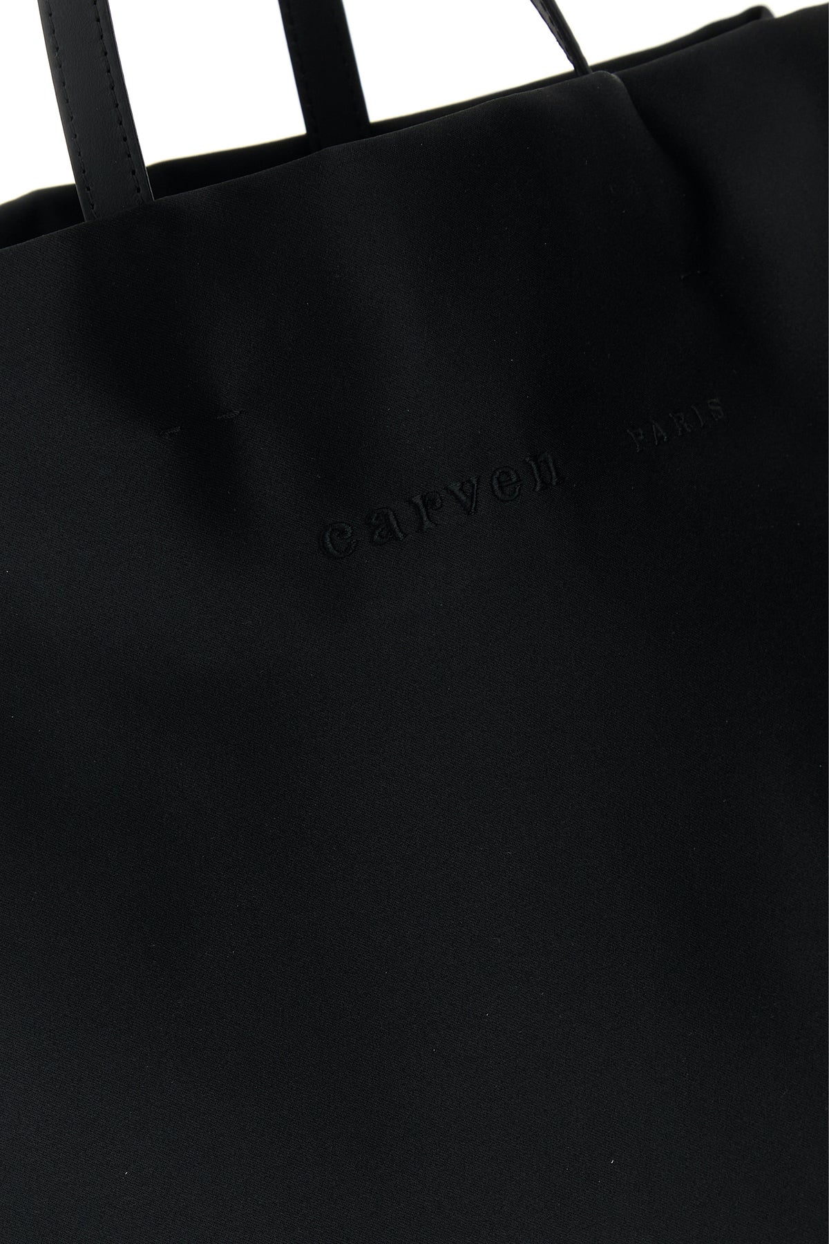 Shopping bag realized in fabric characterized by tonal embroidered logo a the front.