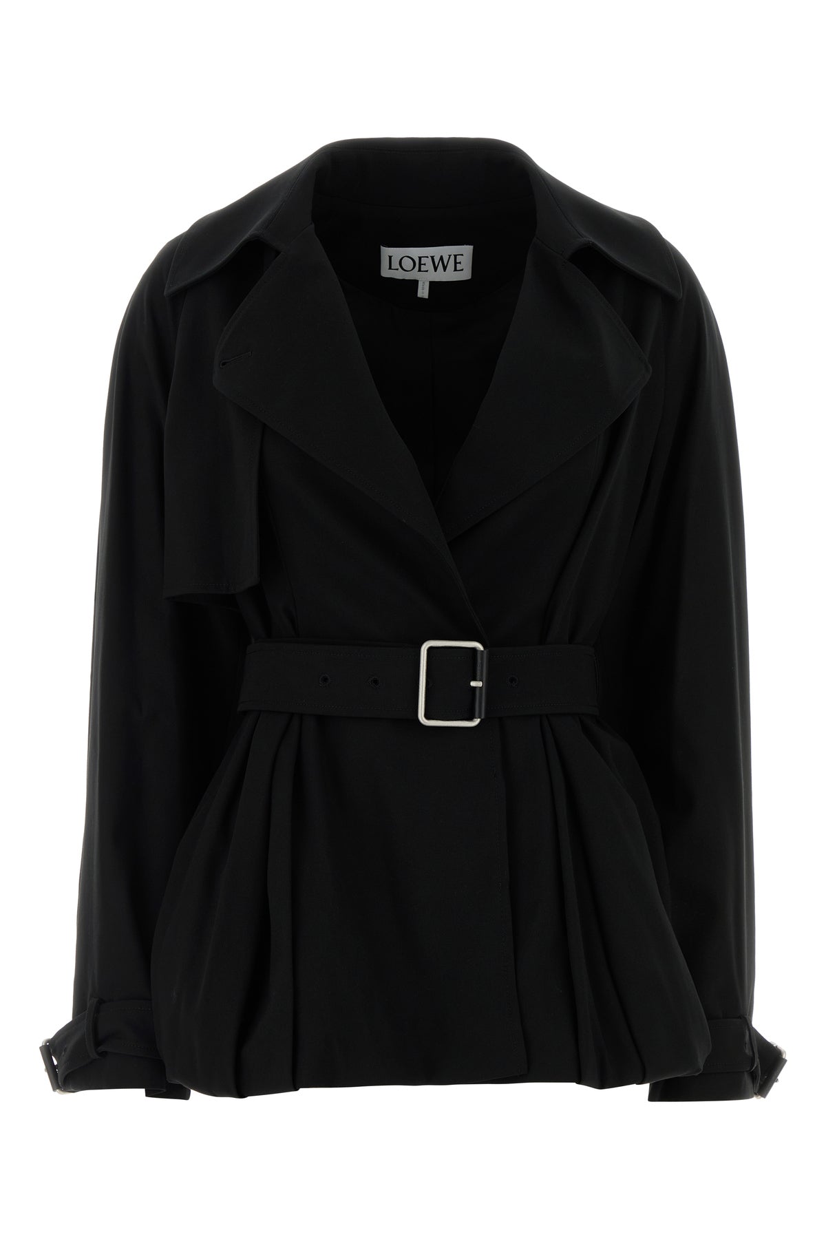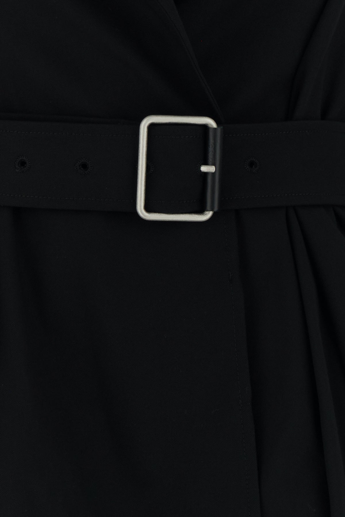 Short-cut trench coat realized in pure cotton gabardine characterized by lapels.