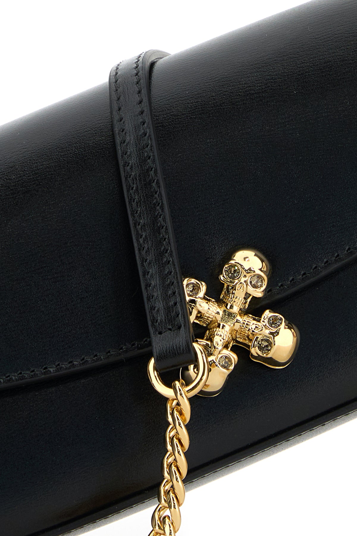 Crossbody bag realized in laminated printed logo at the back enriched by Skull Flower McQueen metal detail at the front.