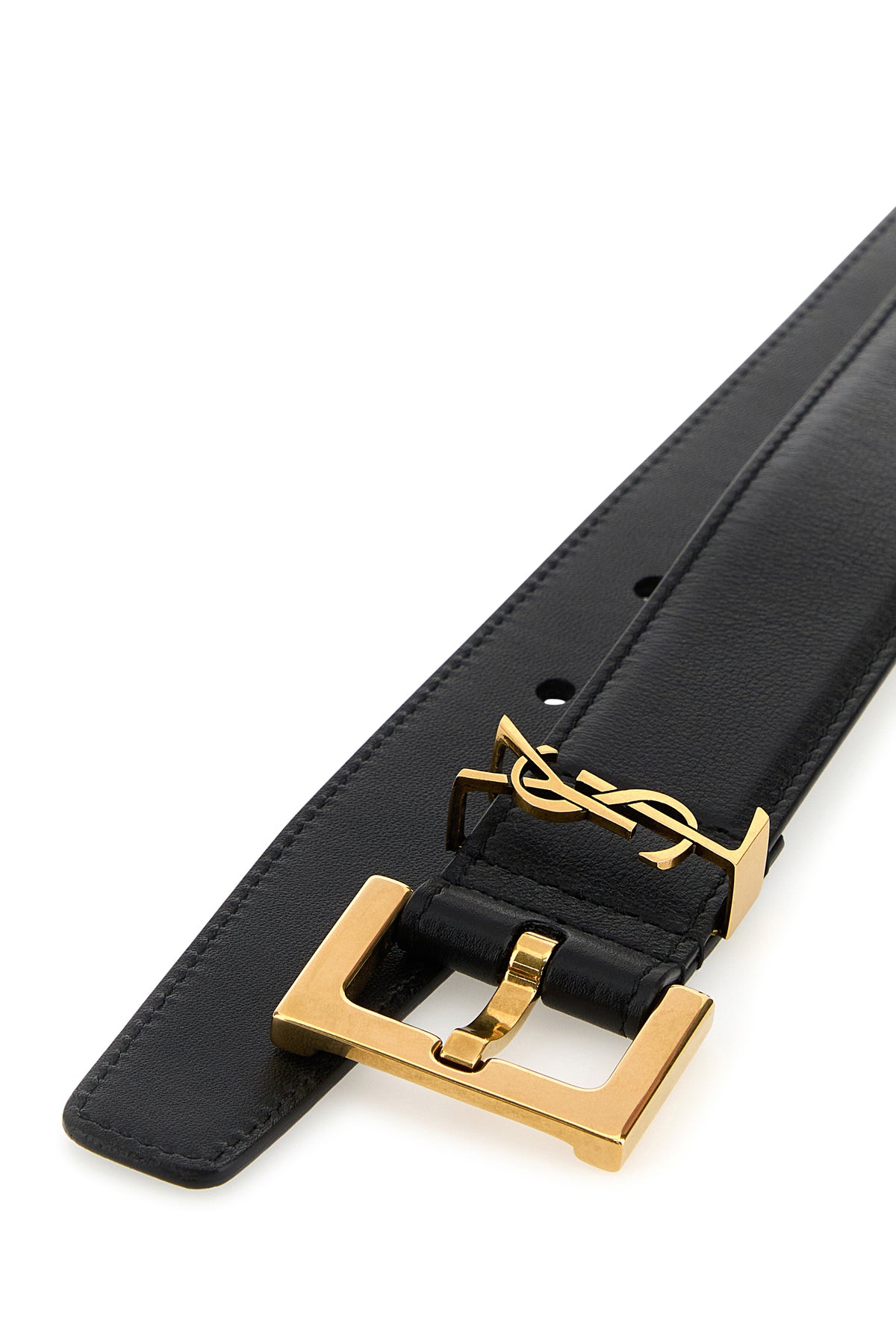 Belt realized in slightly pebble calf leather characterized by iconic Monogram-shaped belt keeper.