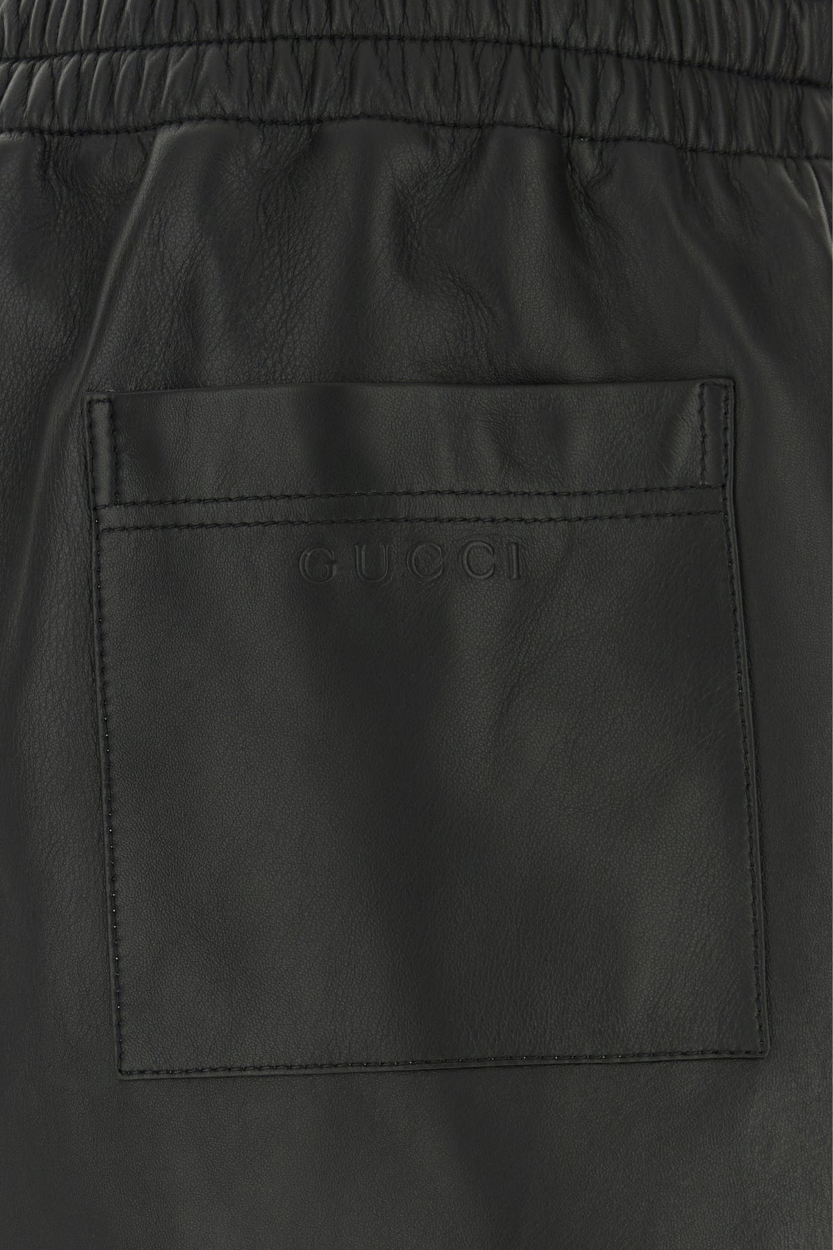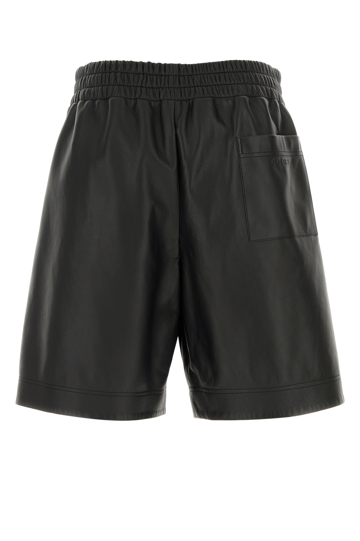 Bermuda shorts realized in lamb leather characterized by Gucci motif in relief at the back.