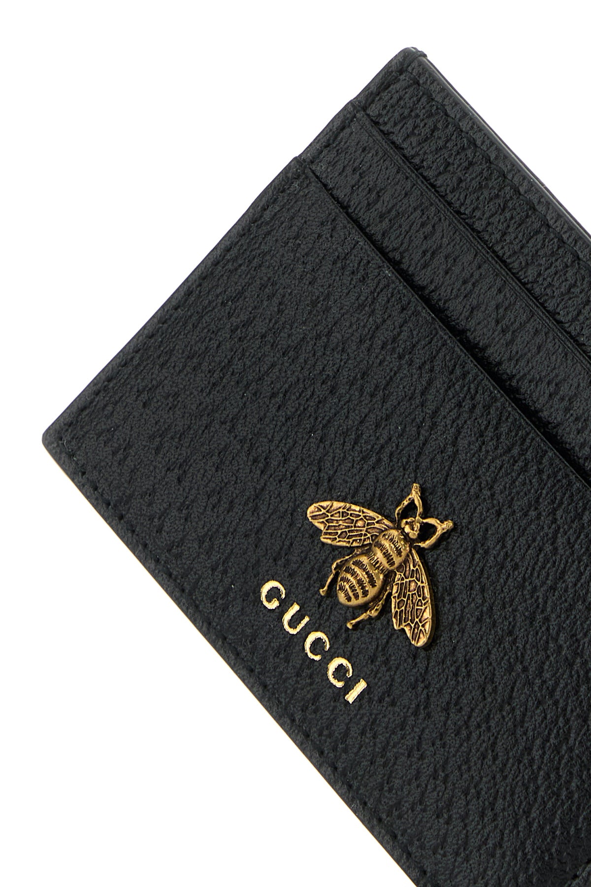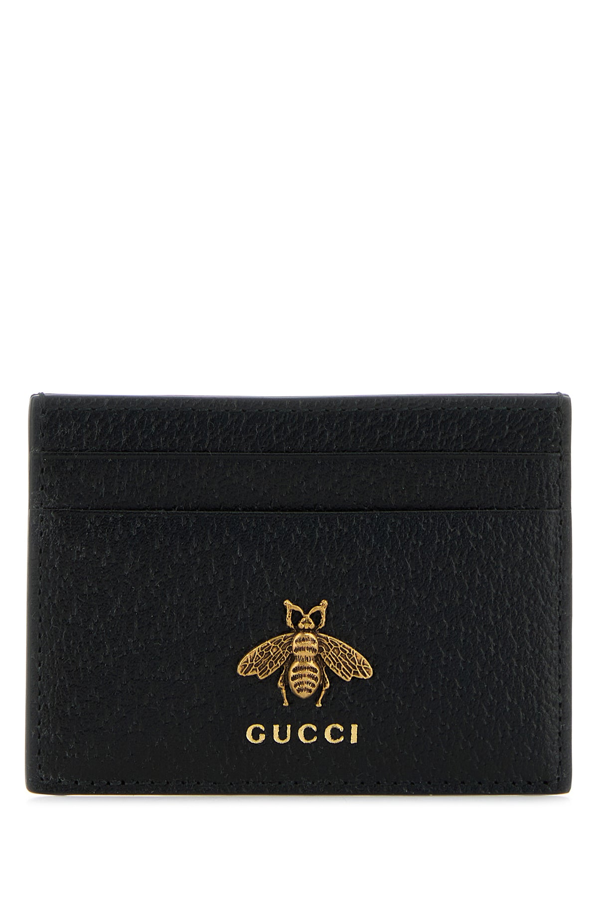 Card holder realized in pebble leather characterized by laminated printed logo enriched by Bee metal detail at the front.