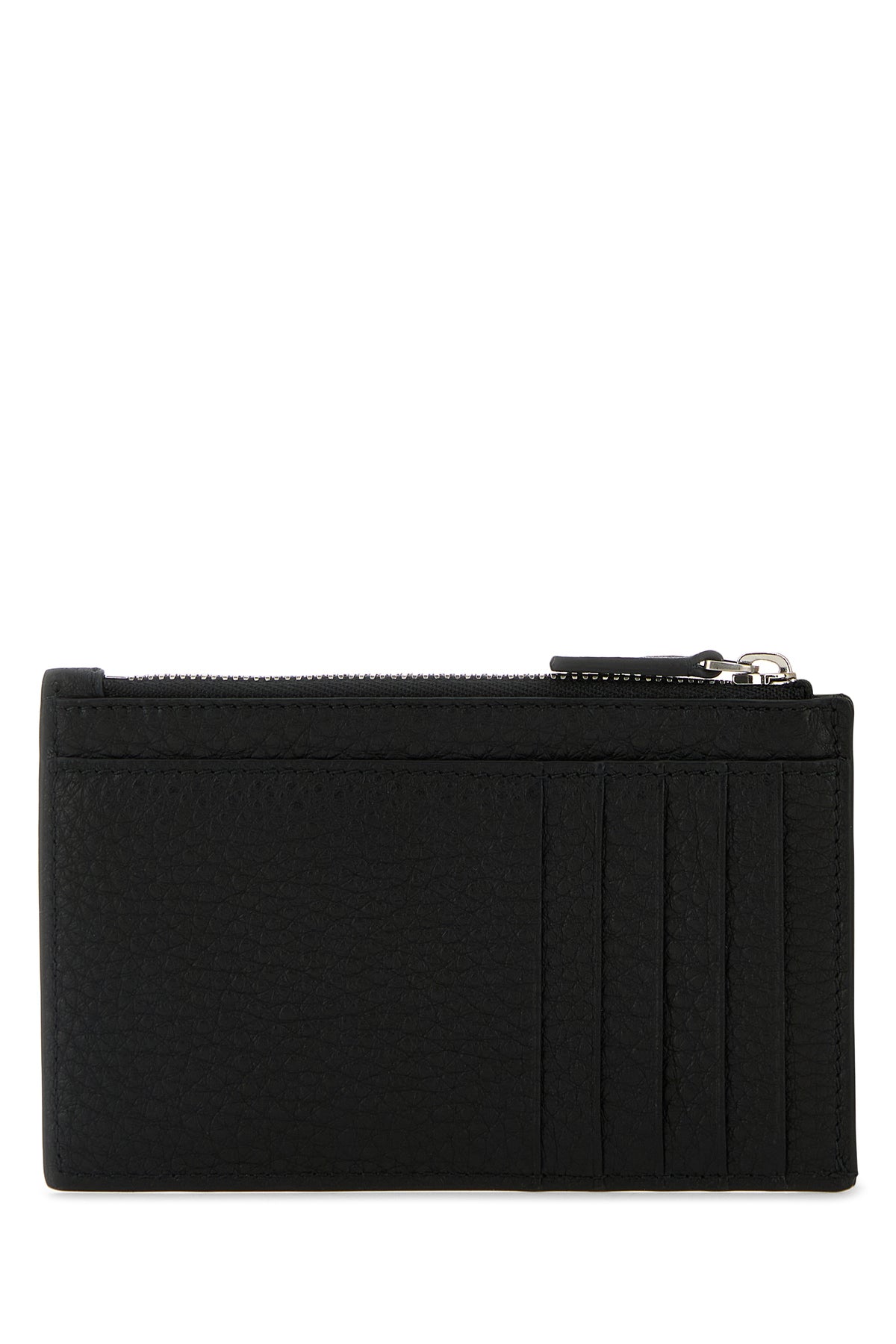 Card holder realized in pebble calf leather characterized by laminated Balenciaga print at the front.