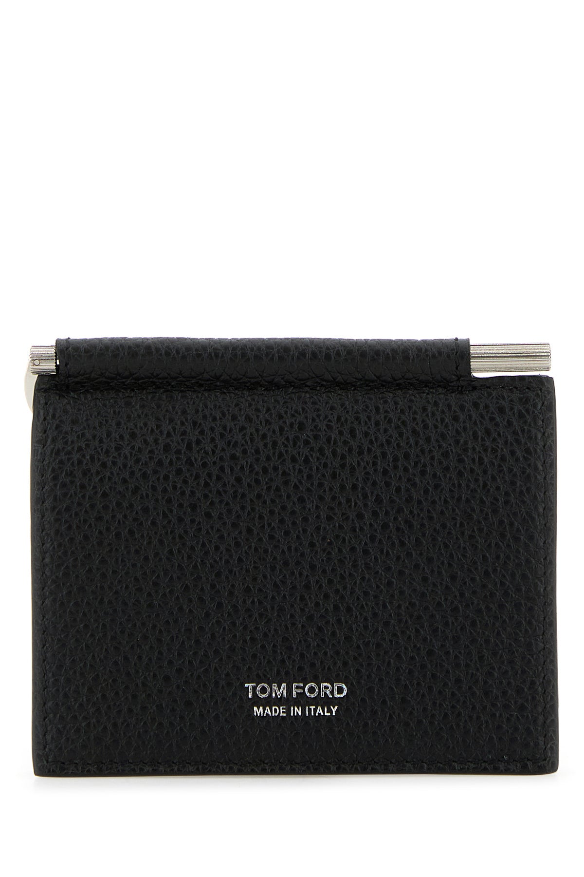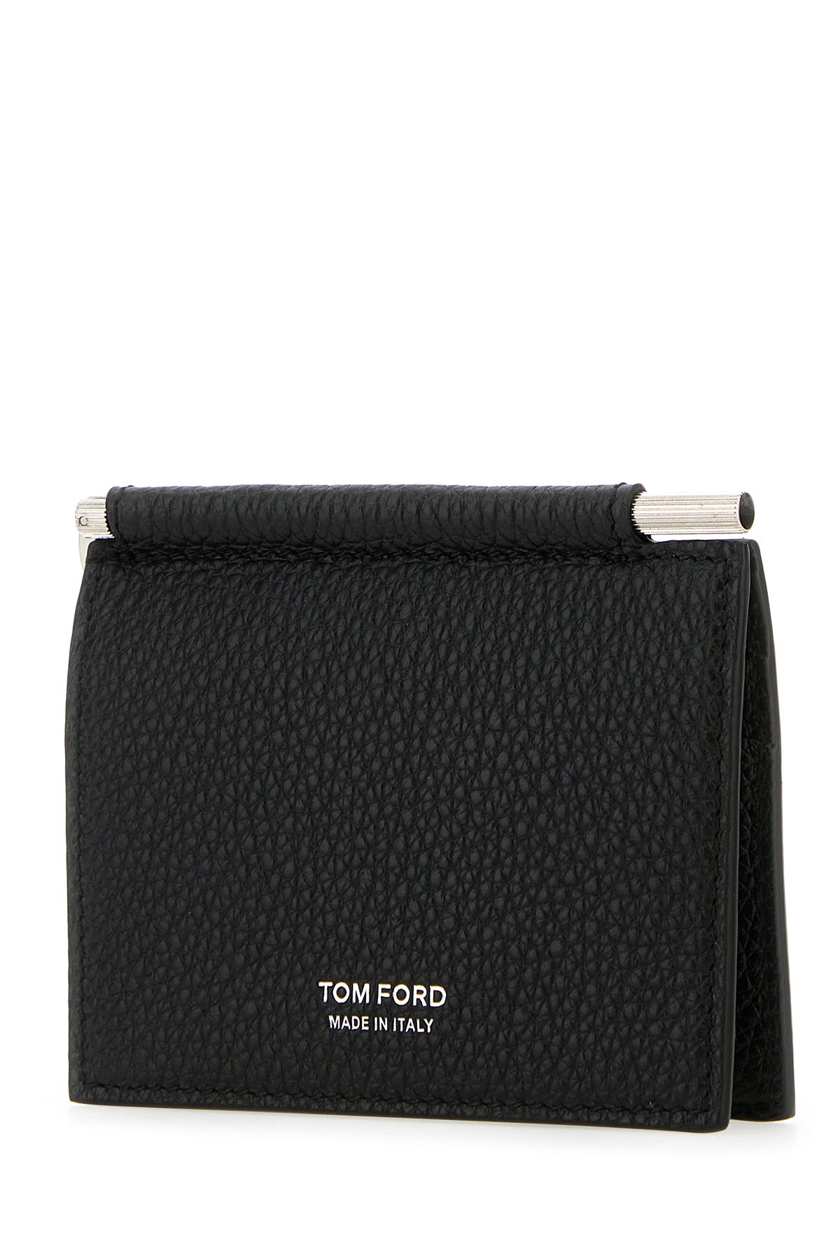 Card holder realized in pebble leather characterized by contrasting printed logo at the front.