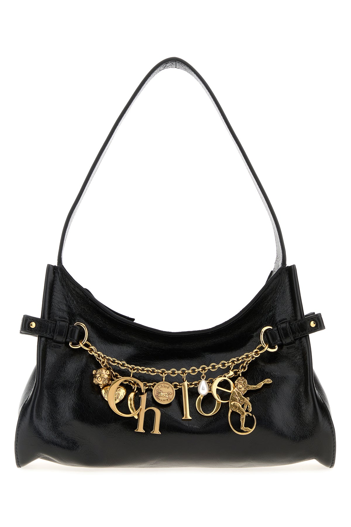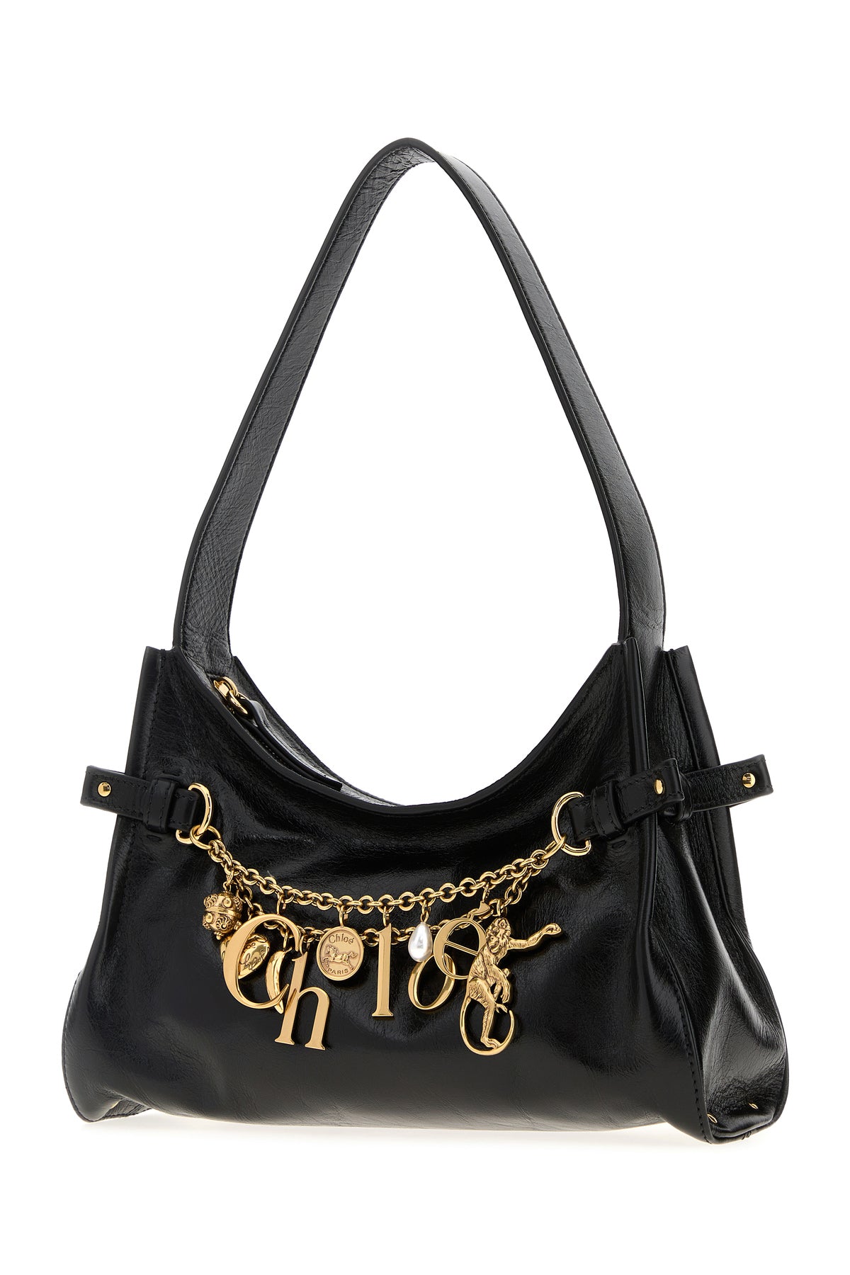 Shoulder bag realized in pebble calf leather enriched by metal chain with charms.