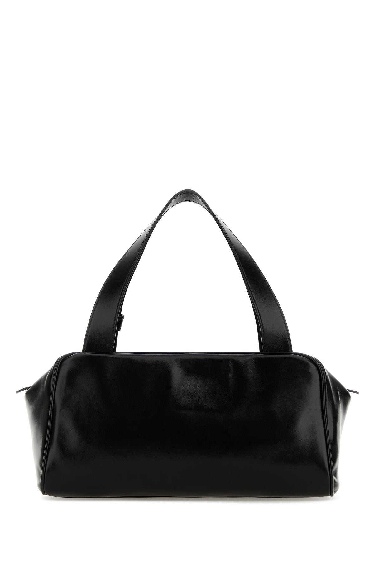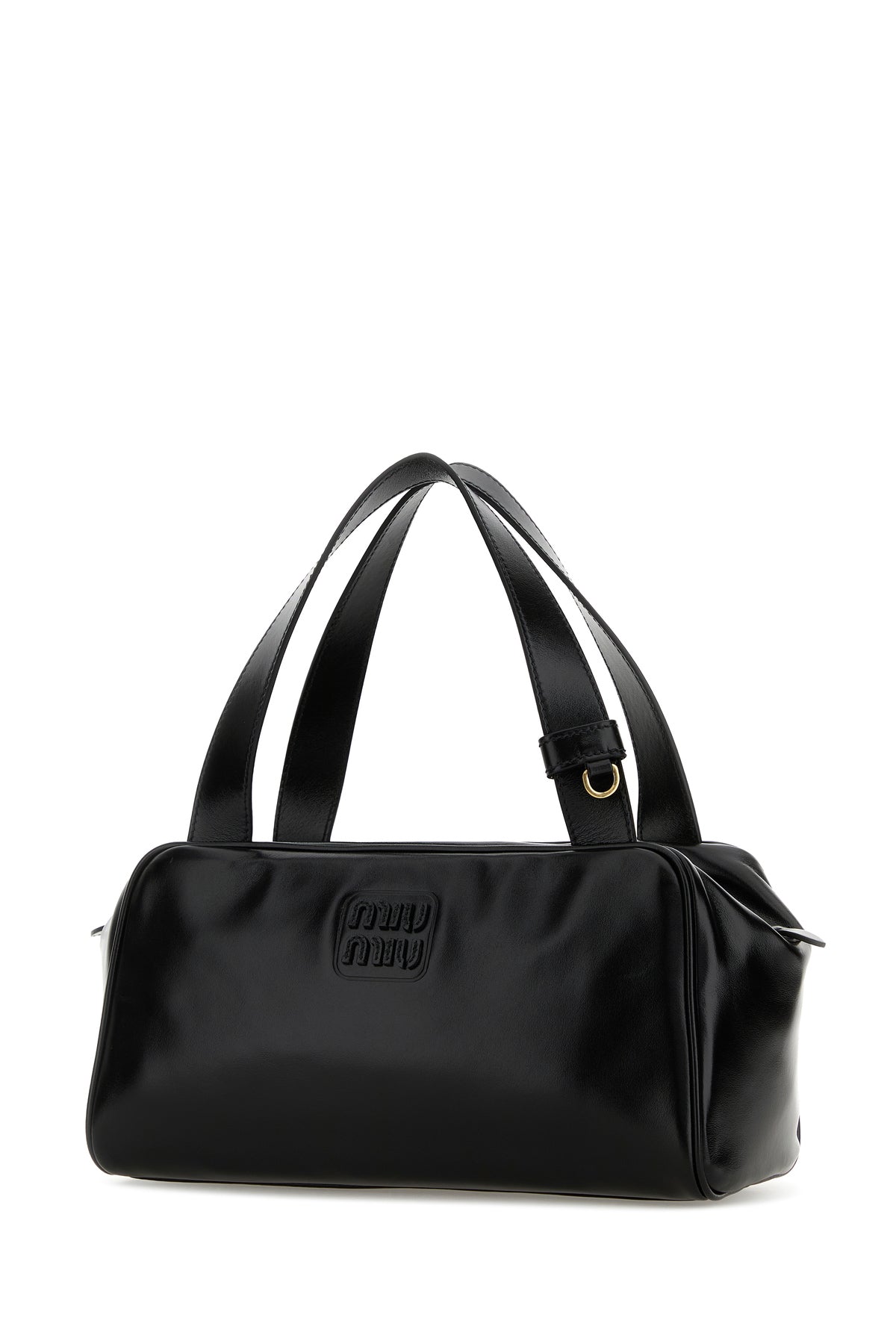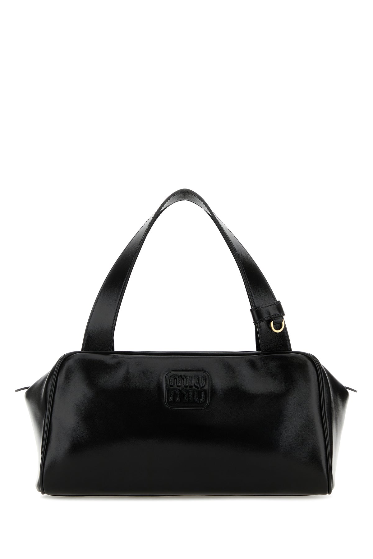 Boston bag realized in polished finish calf leather enriched by logoed patch at the front.