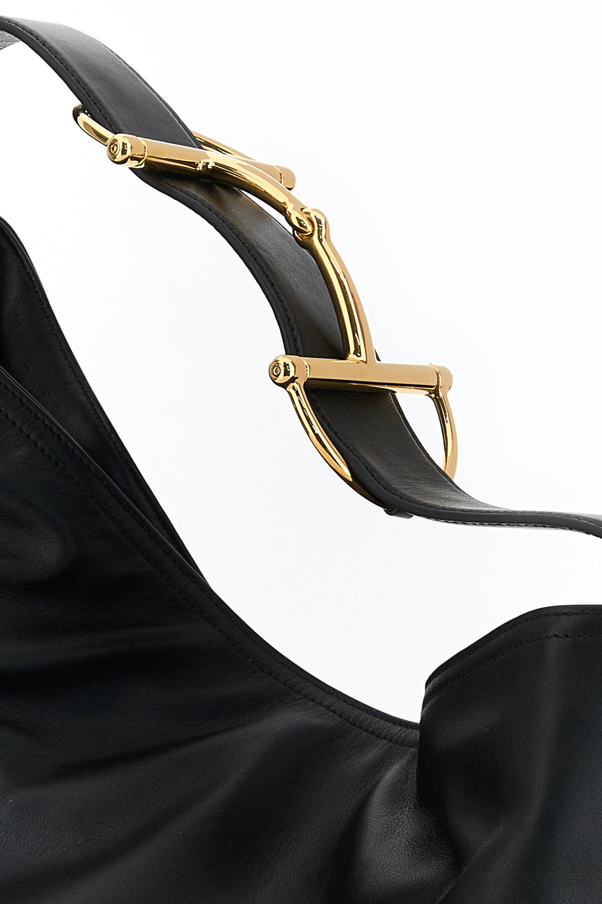 - Adjustable tonal leather shoulder strap with Horsebit metal detail