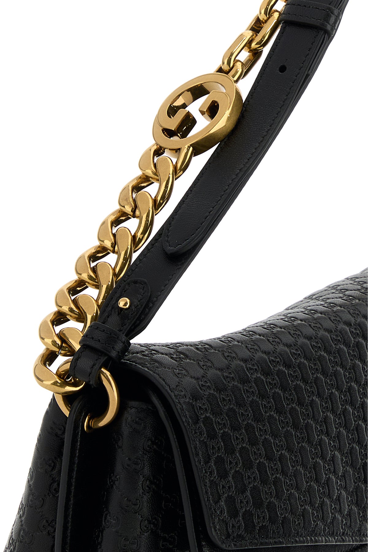 Shoulder bag realized in leather characterized by embossed GG motif on the entire surface.