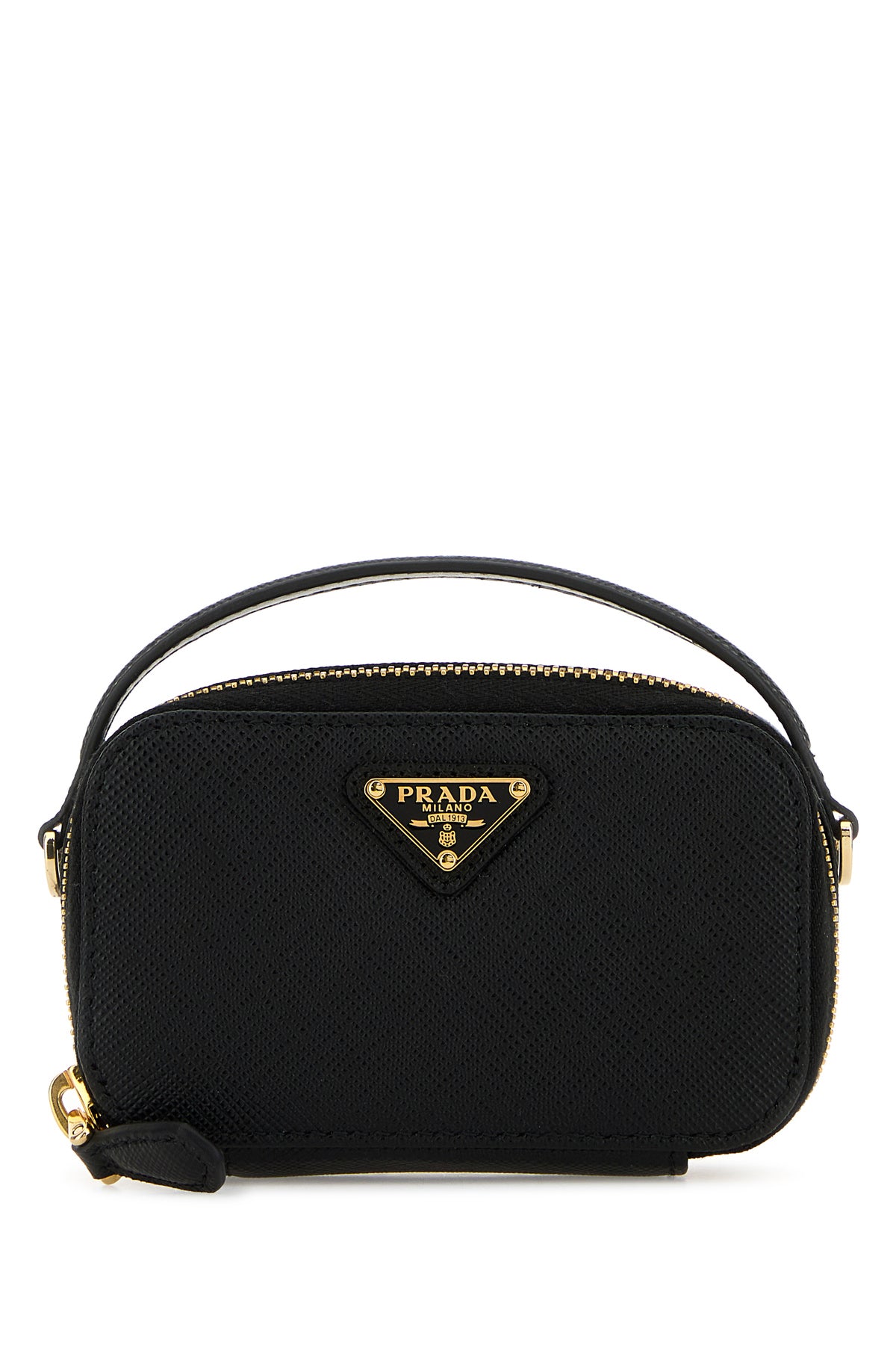 Pouch realized in Saffiano calf leather enriched by metal iconic logoed triangle at the front.